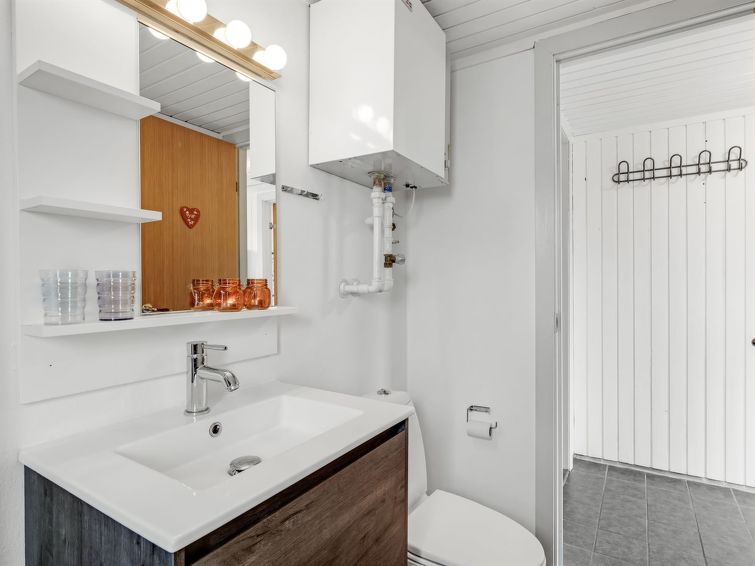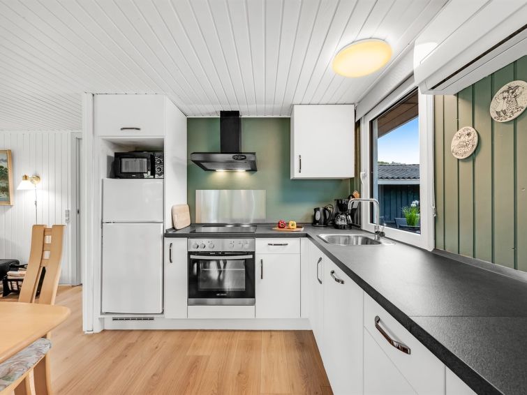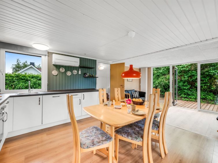 "Gudrund" - 800m to the inlet in Western Jutland", 3 rom hus 70 m2. Passer for 6 voksne. Stue med, TV, radio og stereoanlegg. 1 rom med, 1 dobbeltseng. 1 rom med 2 senger. 1 rom med 2 senger. Kjøkken (stekeovn, oppvaskmaskin, 4 keramiske kokeplater, mikrobølgeovn, frys). Dusj/WC. Terrasse 15 m2, dekt. Fasiliteter: Internett (trådløs LAN [WLAN]). Vennligst merk: røykfri bolig. Max kjæledyr / hund tillatt 1 kjæledyr / hund tillatt.