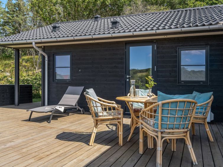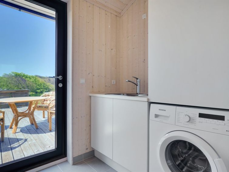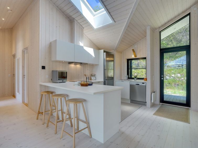 Enmannsbolig, bygget i 2018. 150 m fra sjøen. Privat: uberørt tomt 1'081 m2. Terrasse (100 m2), grill. I huset: vaskemaskin. Parkering ved hbrukt. Daglivarehandel 600 m. Eieren godtar ikke noen ungdomsgrupper.