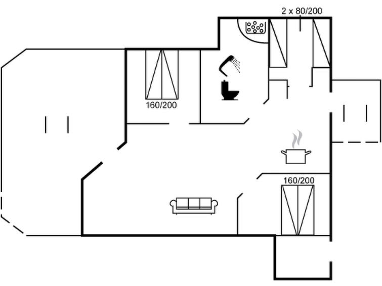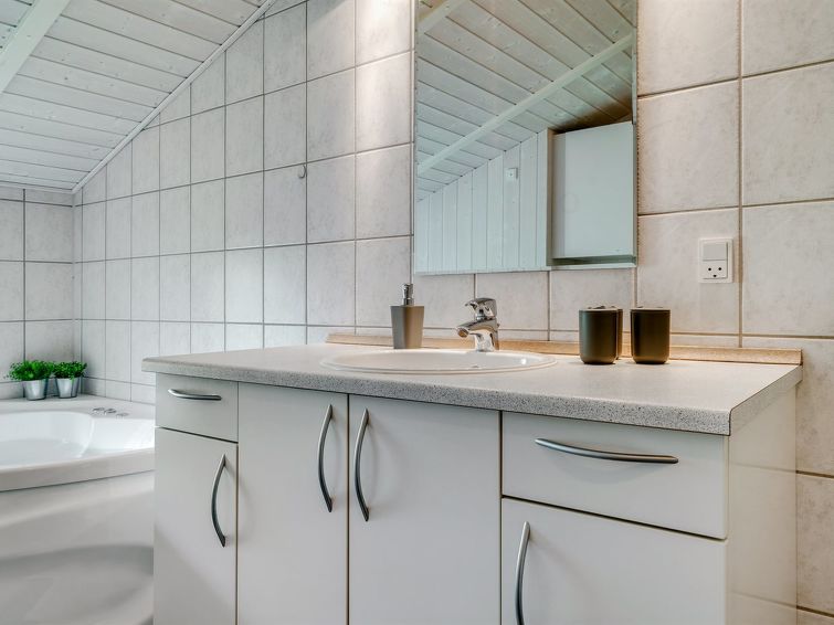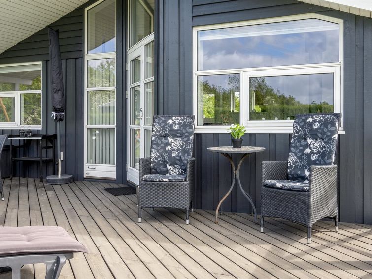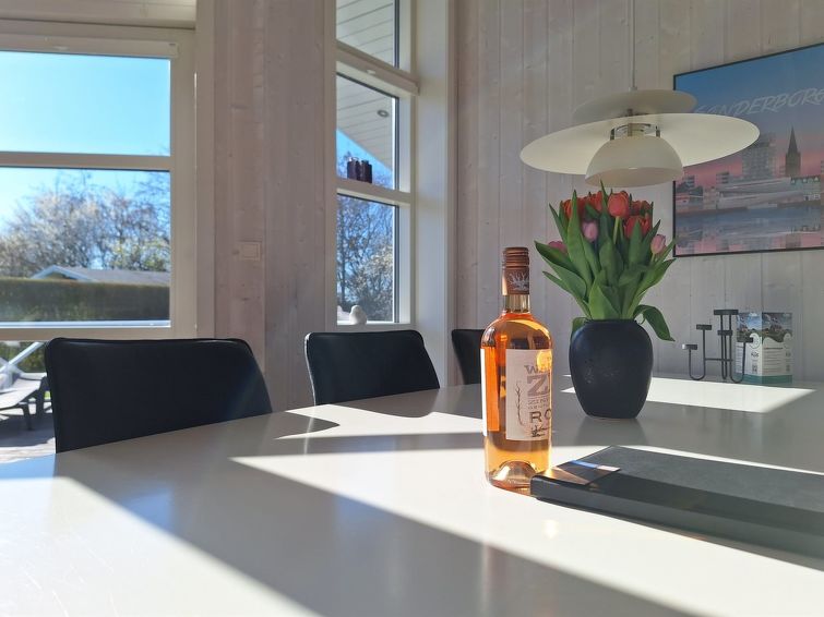 "Gustava" - 700m from the sea in SE Jutland", 3 rom hus 79 m2. Passer for 6 voksne + 1 barn. Stue med, TV, radio og DVD. 1 rom med, 1 dobbeltseng. 1 rom med, 1 dobbeltseng. 1 rom med 2 senger. Kjøkken (stekeovn, oppvaskmaskin, 4 keramiske kokeplater, mikrobølgeovn, frys). Dusj/WC, boblebad. Terrasse 6 m2, dekt. Fasiliteter: høy barnestol barneseng (ekstra). Internett (trådløs LAN [WLAN]). Vennligst merk: røykfri bolig. Max kjæledyr / hund tillatt 1 kjæledyr / hund tillatt.