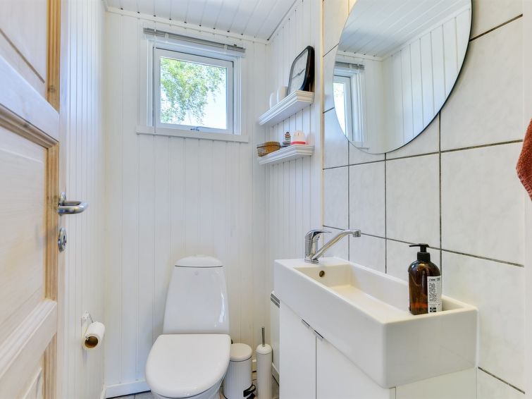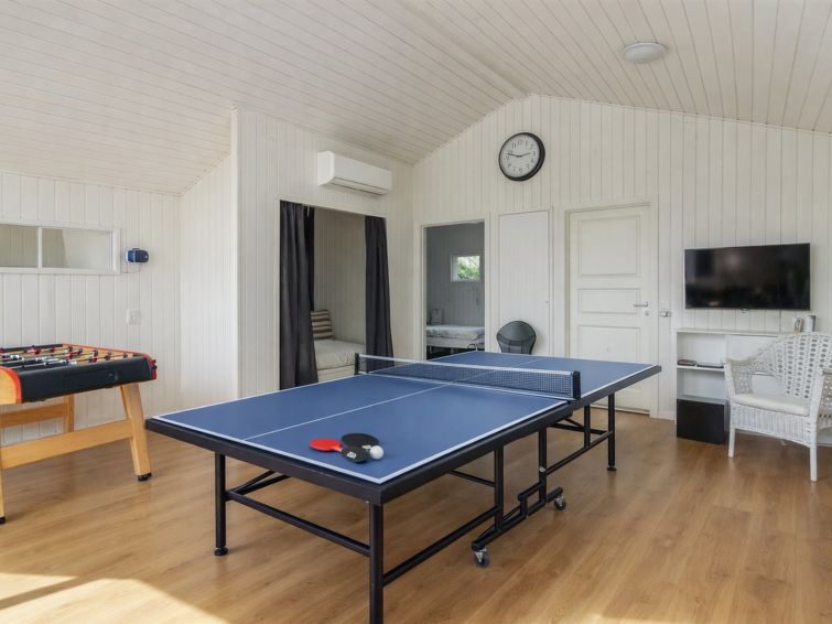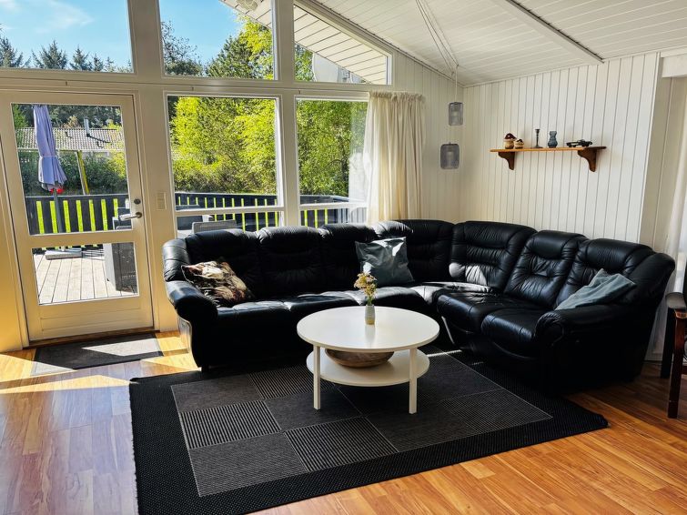 Enmannsbolig, bygget i 1998. 1.2 km fra sjøen. Privat: uberørt tomt 1'450 m2. Terrasse (50 m2), lekeplass (rutsjebane, huske). I huset: badstu, fotballsbord, vaskemaskin. Parkering ved hbrukt. Daglivarehandel 800 m. Eieren godtar ikke noen ungdomsgrupper.