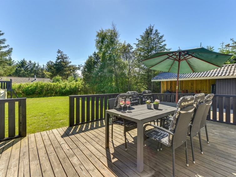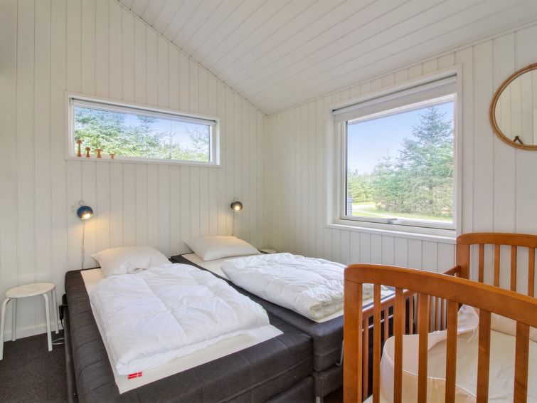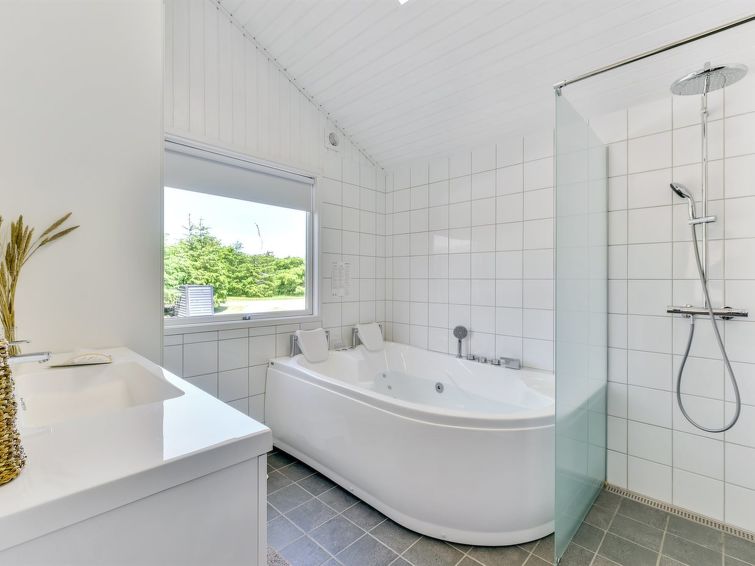 "Gustina" - 1.2km from the sea in NW Jutland", 4 rom hus 150 m2. Passer for 8 voksne + 1 barn. Stue med, TV, radio og DVD. 1 rom med, 1 dobbeltseng. 1 rom med, 1 dobbeltseng. Åpen galleri, 1 rom med, 1 dobbeltseng. Åpen galleri, 1 rom. Kjøkken (stekeovn, oppvaskmaskin, 4 keramiske kokeplater, mikrobølgeovn, frys). 2 dusjer/WC, boblebad. Terrasse 10 m2, dekt. Fasiliteter: høy barnestol barneseng (ekstra). Internett (trådløs LAN [WLAN]). Vennligst merk: røykfri bolig. Max kjæledyr / hund tillatt 1 kjæledyr / hund tillatt.