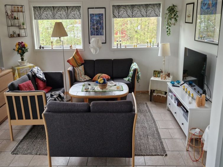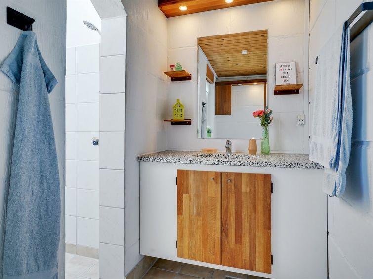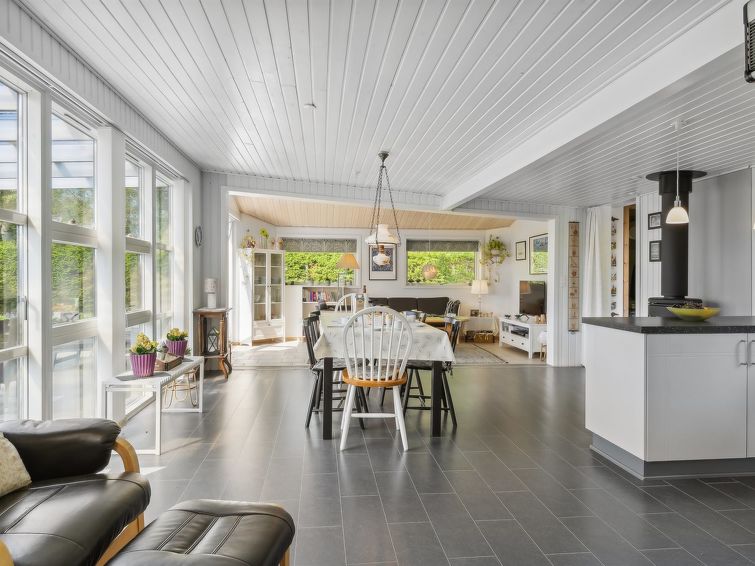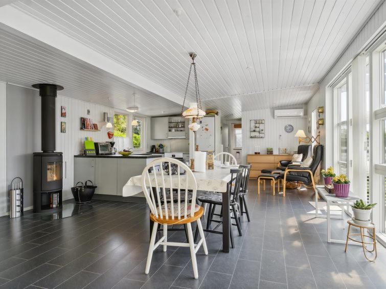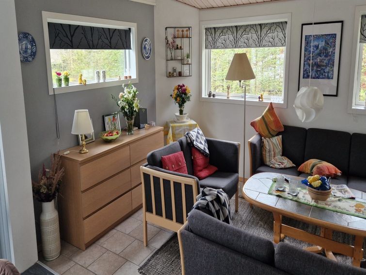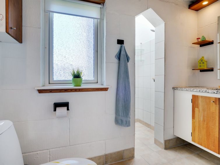 Enmannsbolig, bygget i 1964. 900 m fra sjøen. Fellesbruk: hage. Privat: tomt 820 m2, velholdt hage (inngjerdet). Terrasse (20 m2), grill, lekeplass (rutsjebane, huske). I huset: vaskemaskin. Parkering ved hbrukt. Bilporten. Daglivarehandel 1.5 km. Eieren godtar ikke noen ungdomsgrupper.