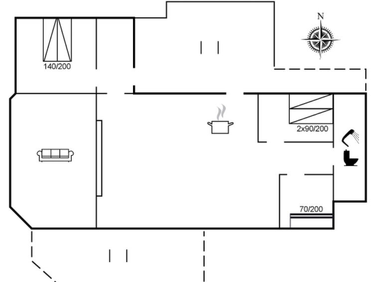 "Guthrik" - 900m from the sea in NE Jutland", 3 rom hus 80 m2. Passer for 6 voksne. Stue med, TV, radio og DVD. 1 rom med, 1 dobbeltseng. 1 rom med 2 senger. 1 rom med, 1 x 2 køysenger. Kjøkken (stekeovn, oppvaskmaskin, 4 keramiske kokeplater, frys). Dusj/WC. Terrasse 18 m2, dekt. Fasiliteter: høy barnestol. Internett (trådløs LAN [WLAN]). Vennligst merk: røykfri bolig. Max kjæledyr / hund tillatt 1 kjæledyr / hund tillatt.