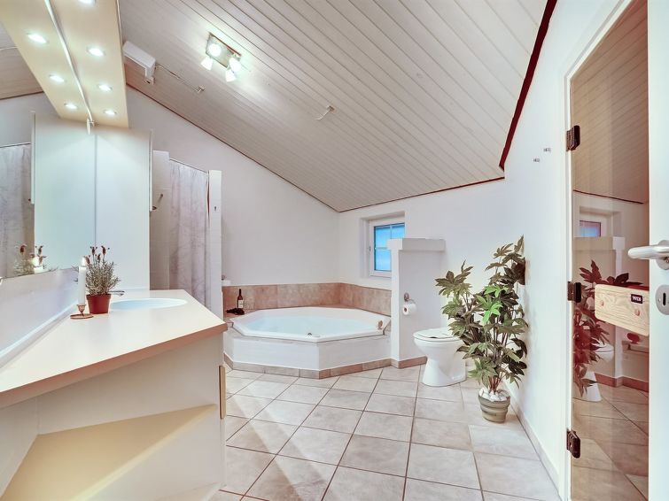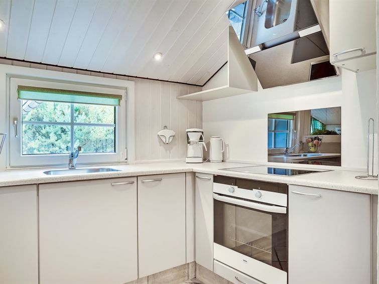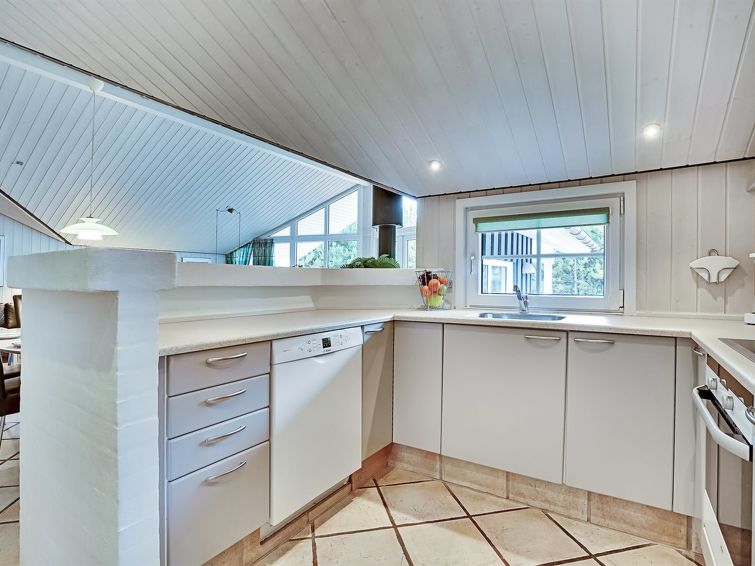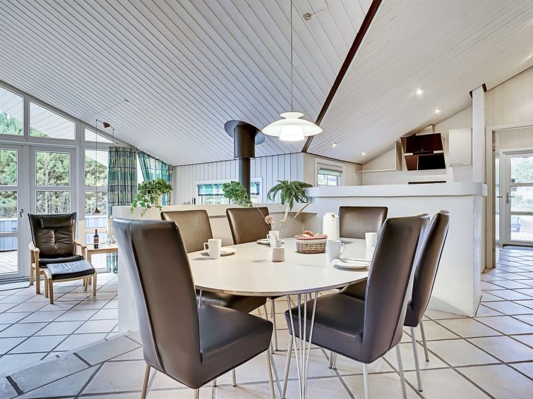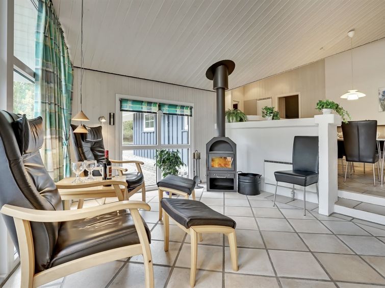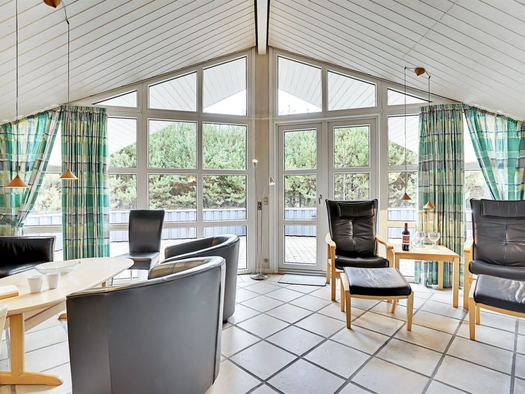 "Guththorm" - 600m from the sea in Western Jutland", 4 rom hus 118 m2. Passer for 8 voksne + 1 barn. Stue med, TV, CD-spiller, stereoanlegg og DVD. 1 rom med, 1 dobbeltseng. 1 rom med, 1 dobbeltseng. 1 rom med 2 senger. 1 rom med, 1 dobbeltseng. Kjøkken (stekeovn, oppvaskmaskin, 4 keramiske kokeplater, mikrobølgeovn, frys). 2 dusjer/WC. Terrasse 15 m2, dekt. Fasiliteter: høy barnestol barneseng (ekstra). Internett (trådløs LAN [WLAN]).