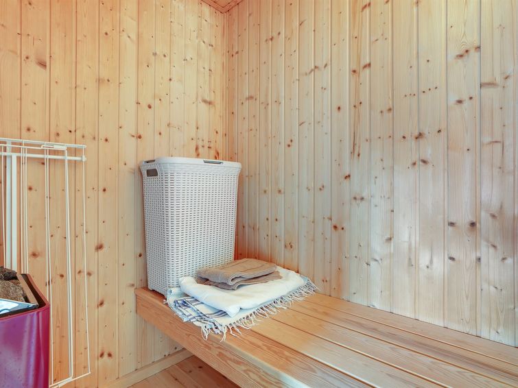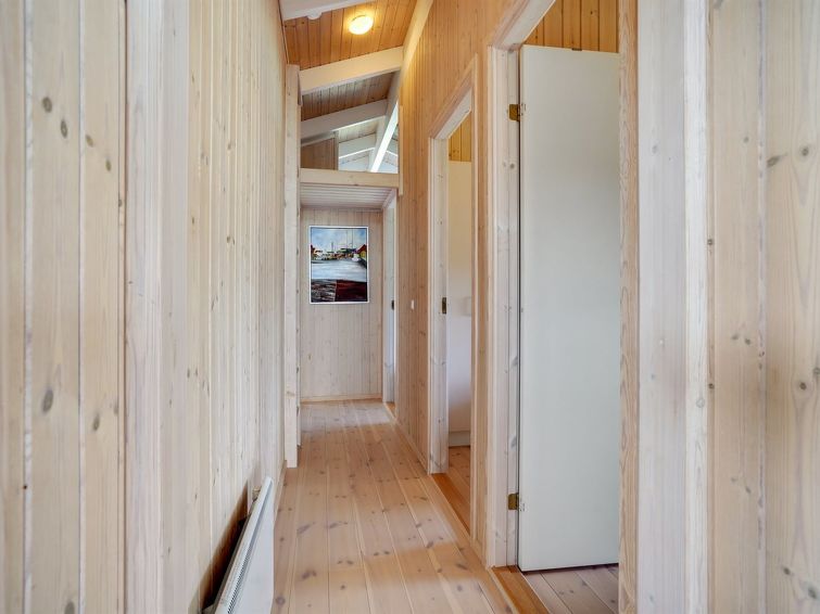 Enmannsbolig, bygget i 2004. 100 m fra sjøen. Privat: tomt 800 m2, velholdt hage. Grill. I huset: badstu, vaskemaskin, tørketrommel. Parkering ved hbrukt. Bilporten. Daglivarehandel 1.3 km. Golfbane 3 km. Eieren godtar ikke noen ungdomsgrupper.