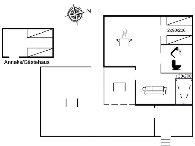 "Gyrth" - 20m to the inlet in Funen", 2 rom hus 43 m2. Passer for 4 voksne. Stue med, 1 dobbel sovesoffa og radio. 1 rom med 2 senger. Kjøkken (stekeovn, oppvaskmaskin, 4 keramiske kokeplater, mikrobølgeovn, frys). Dusj/WC. Av viken. Fasiliteter: Internett (trådløs LAN [WLAN]). Vennligst merk: røykfri bolig.