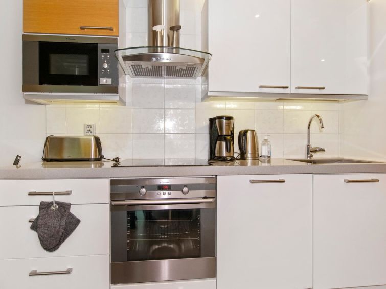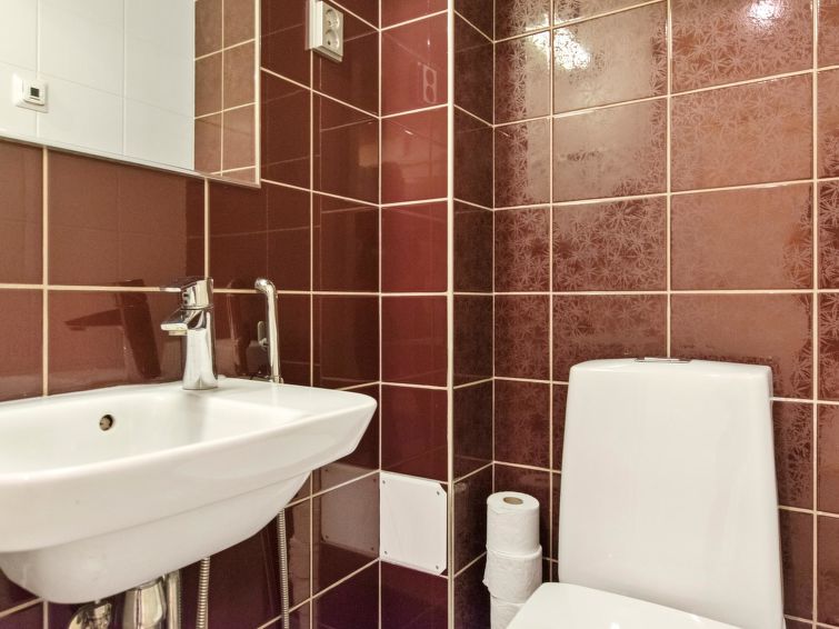 This holiday apartment located in Vuokatti ski centre was completed in 2007. Apartment floor area is 74 m². There is combined living room & kitchen with sofa-bed for 1-2 persons, three bedrooms: 1st with twinbed (180cm) and 2nd with two separate beds (90cm). Sauna (electric heating), washroom/toilet and separate toilet. Balcony with terrace furniture and barbeque (gas) on summer time.