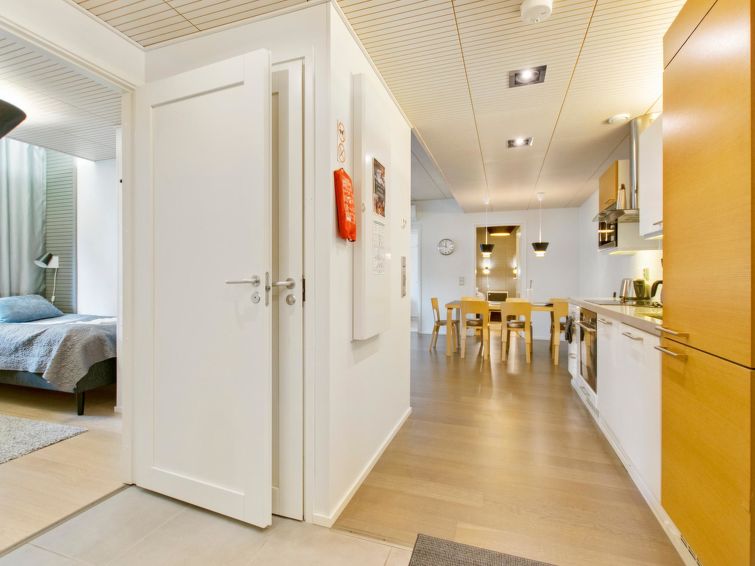 The house is built into the hillside, when apartment Haapala Suites 27 entrance is from corridore of the house, apartment is located on the 1st floor, middle in house. Ski maintenance room shared with other apartments. A lockable storage is located in the corridor of the house.