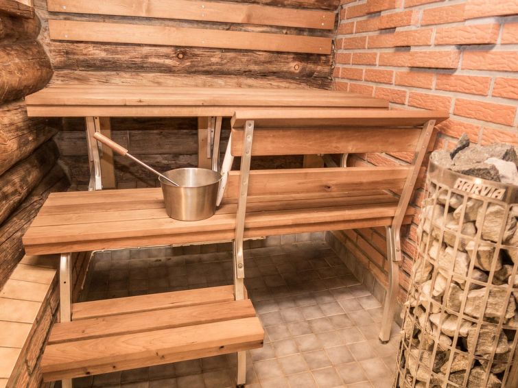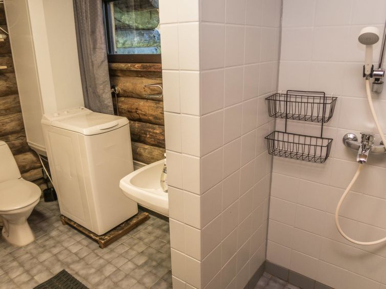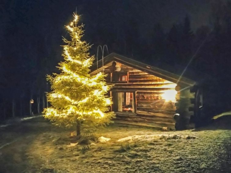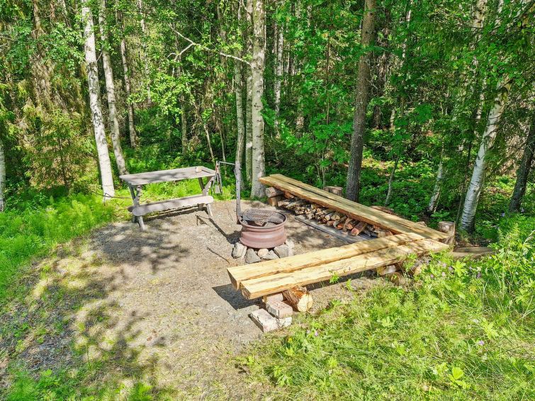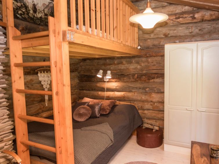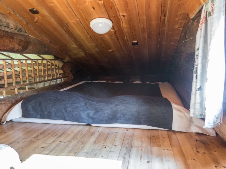 Log cottage, built in 1988, bedroom: double bed + sleeping loft with 2 mattresses (steep ladder to the sleeping loft), living room: sofa bed for 2, loft: 3 mattresses, combined kitchen/living room, electric sauna. Downstairs 78 m², loft 10 m². Other cottages in the area.