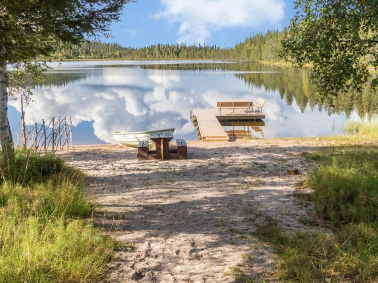 20 km north of Kuusamo, Ruka 7 km, Mustalampi pond 30 m, sandy beach, pier. Rowing boat.