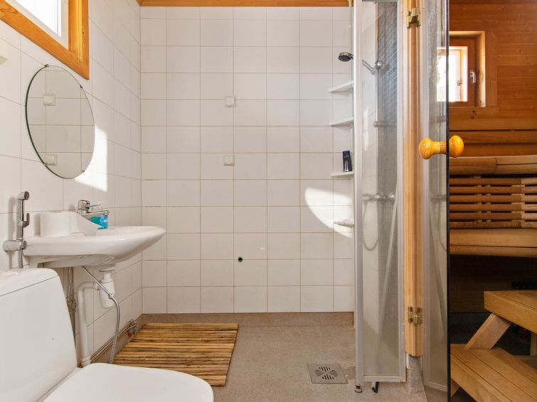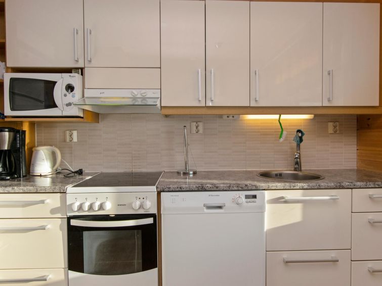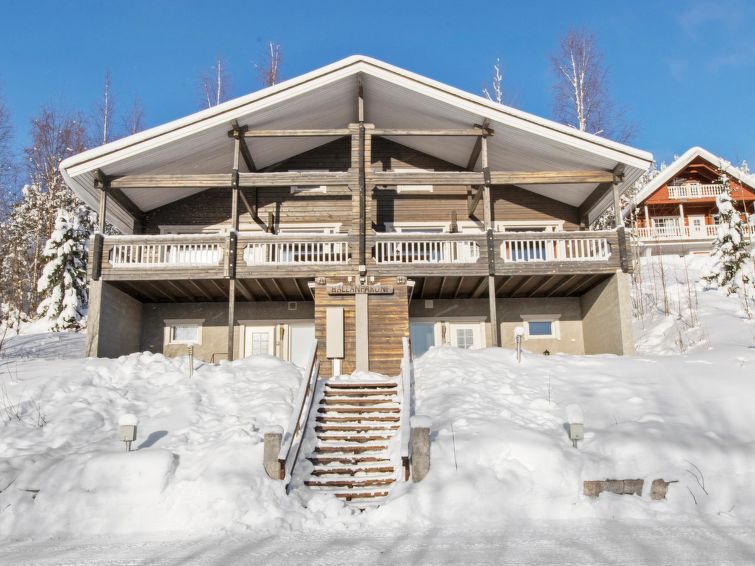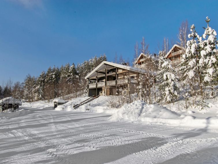 Apartment can be rented for maximum 8 persons. Ukkohalla: Tourism centre located by Lake Syväjärvi, with an information centre, store, restaurant, spa, slope centre, snowmobile tracks, ski tracks, programme services, beach (further information at www.ukkohalla.fi). Distance to the Ukkohalla services 1.5 km. Kajaani airport 86 km, Oulu 170 km, Helsinki 650 km, bus stop Hyrynsalmi 18 km, railway station Kontiomäki 66 km. Pets allowed, view over the slopes.