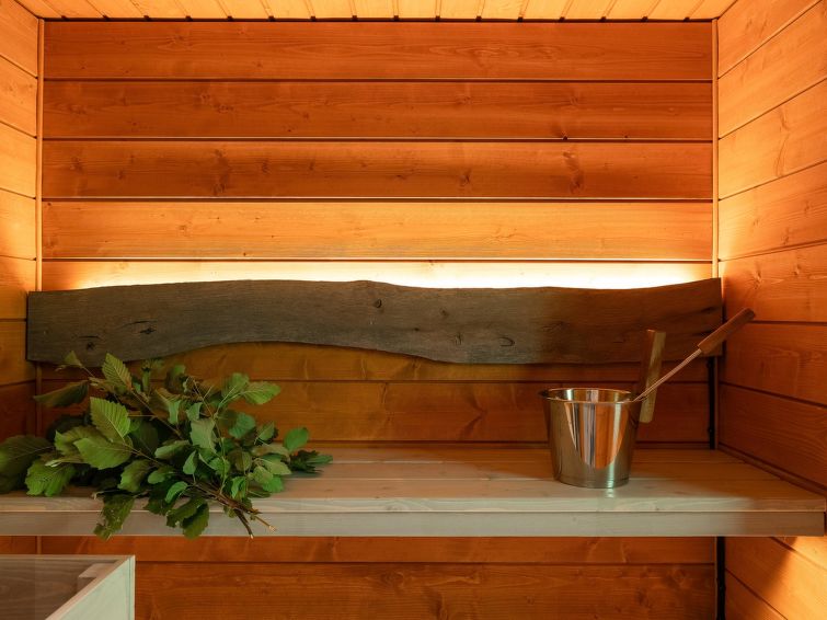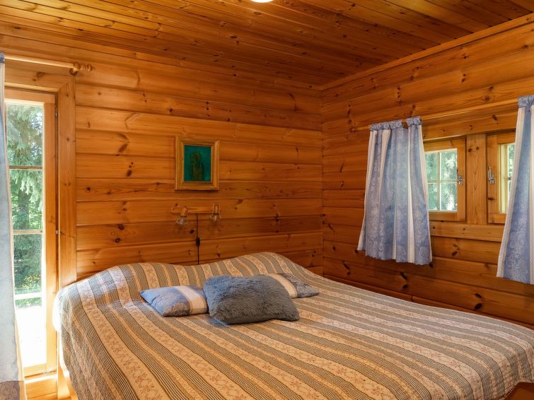 Log cabin 1990, kitchen (renovated 2010), living room, bedroom with 2 beds, alcove with 2 beds, dressing room, washroom, sauna with electric stove, glassed-in porch. Portable charcoal BBQ grill. Please bring own coal. For families only.
