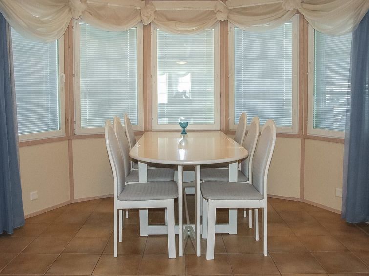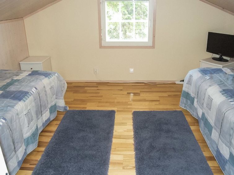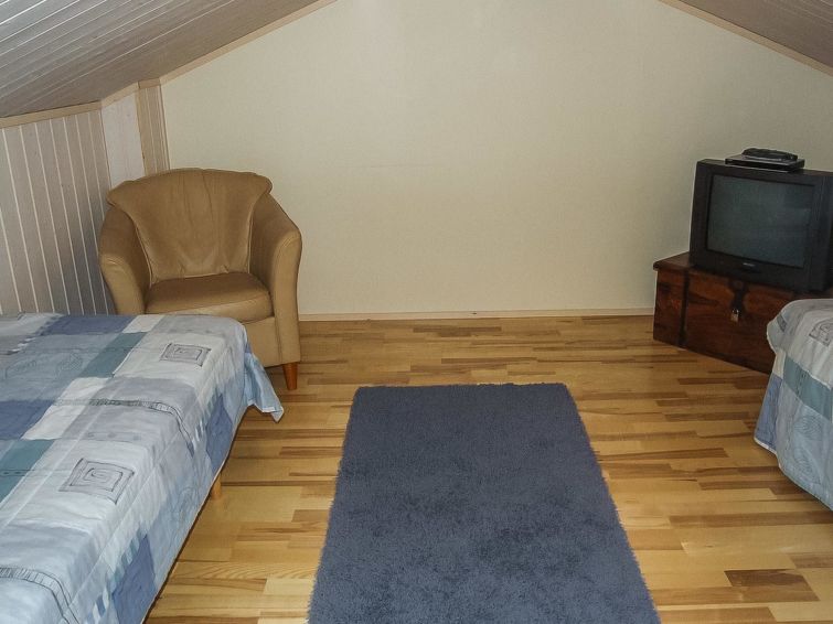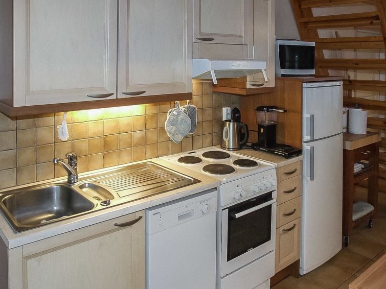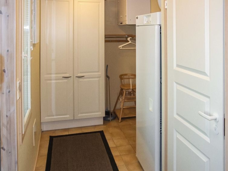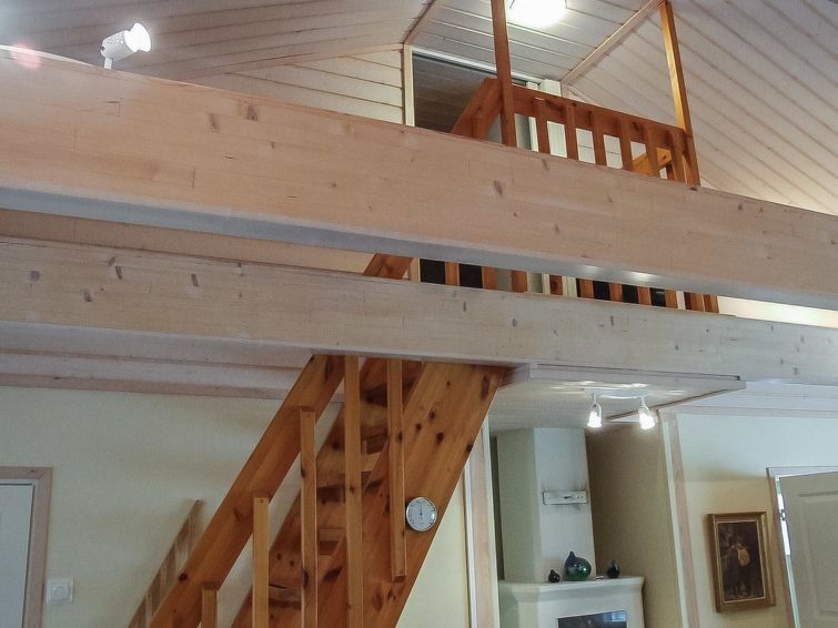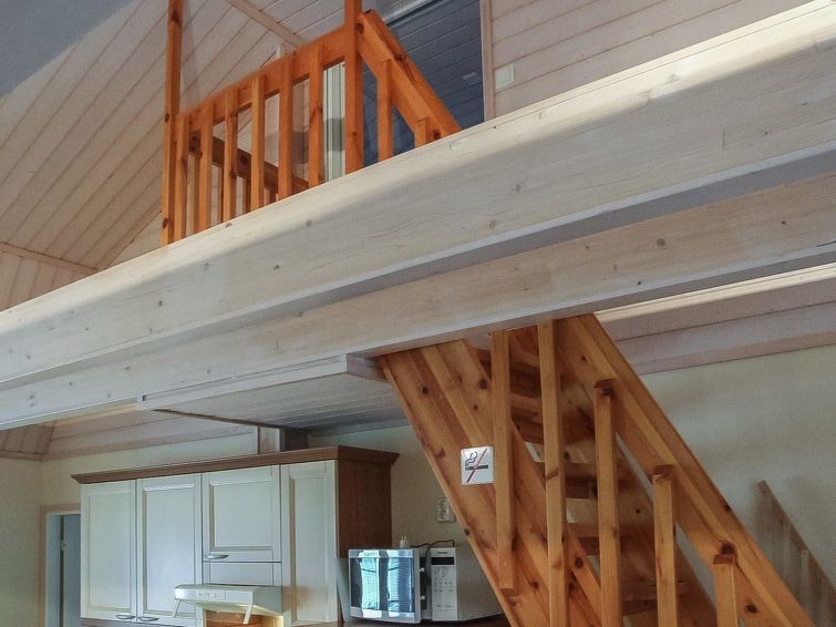 25km north of Kuusamo, Vuosseli (Eastern Ruka) 1.4km. Cosy apartment in plank-built semi-detached house, built in 2004, bedroom 1: double bed, bedroom 2: double bed , small bedrooms 1-2 on loft (folding doors, low room height): 2 beds, combined kitchen/living room, electric sauna, dressing room. Area 75 m² + 2 lofts 22 m².