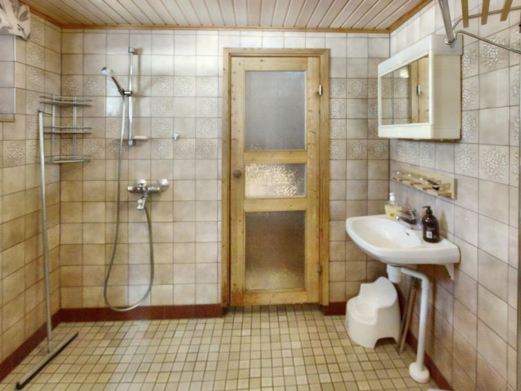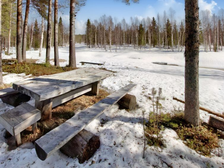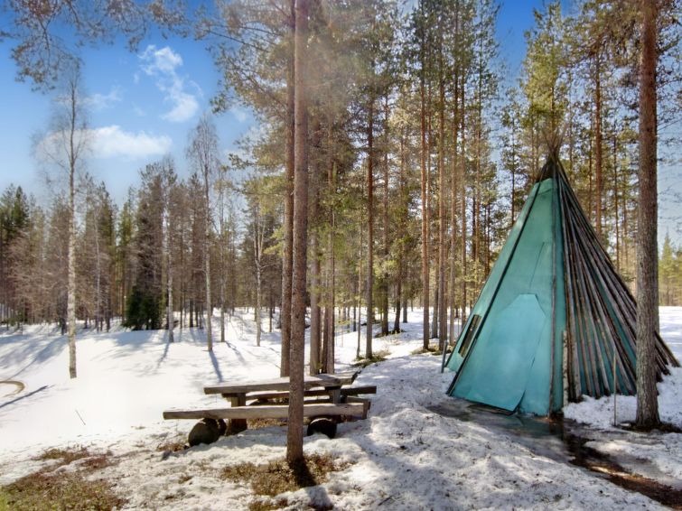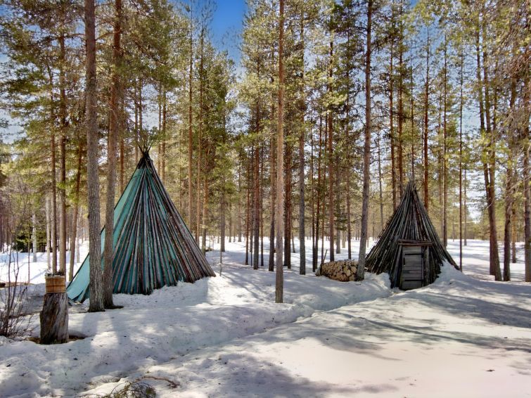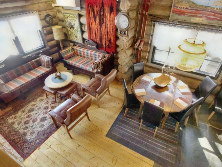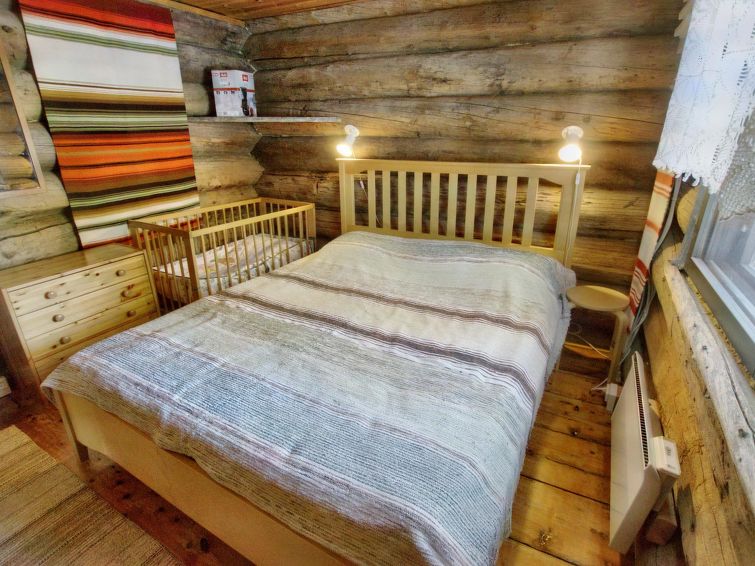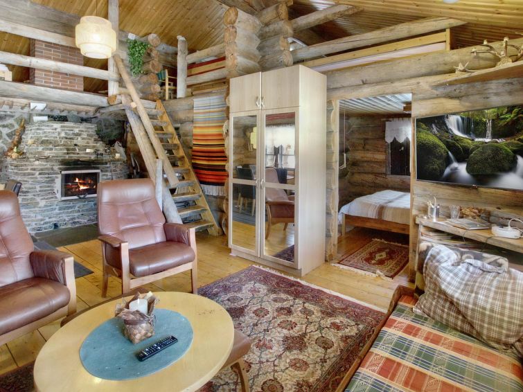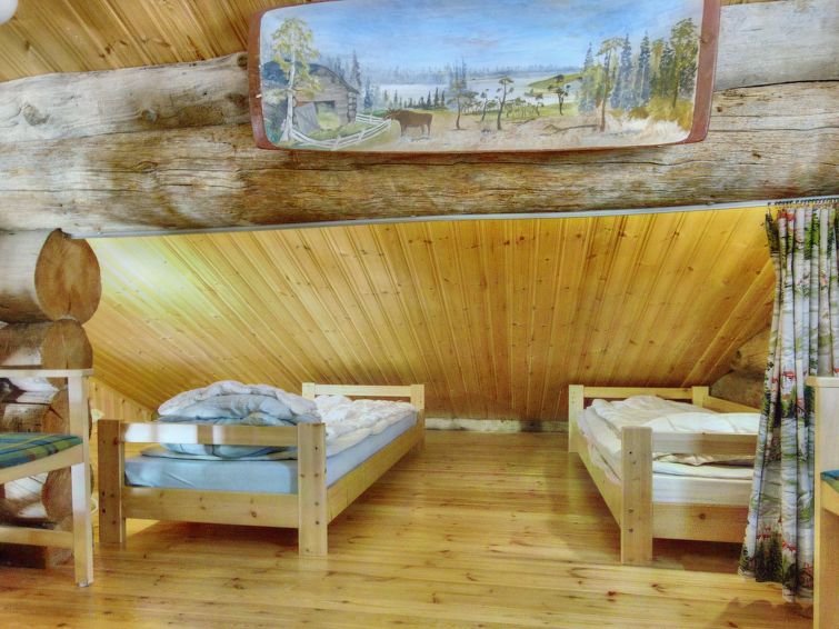 A separate log cottage located 175 km north of Rovaniemi, 10 km towards Kolari from Ylläsjärvi, located along river Vähäjoki. Built 1990. Kitchen, livingroom, two bedrooms with double bed in each bedroom, loft (55 m²) with 3 alvoces with 2-3 mattresses. In loft also a sofabed, electric sauna, washing room, terrace, toilet. Air source heat pump (for heating). Prices include final cleaning. Bed linen available on order.