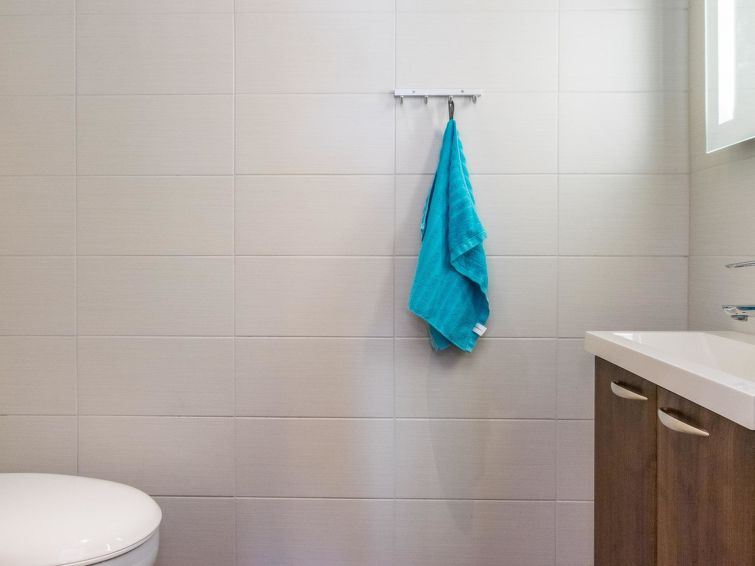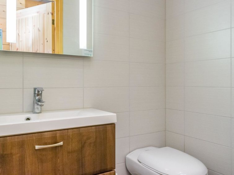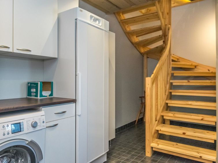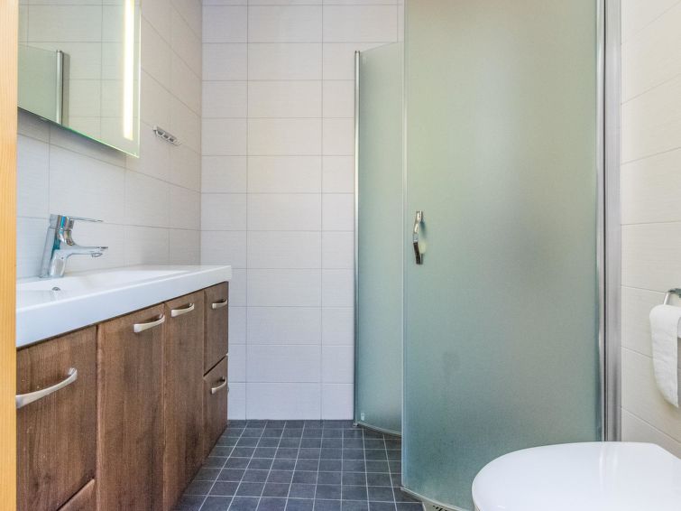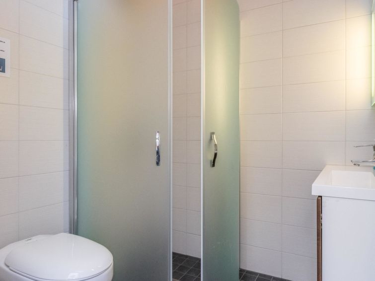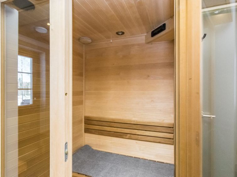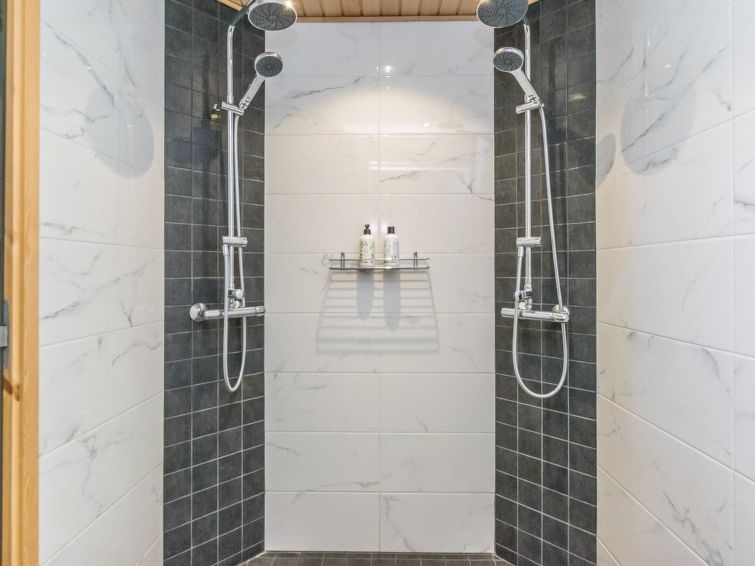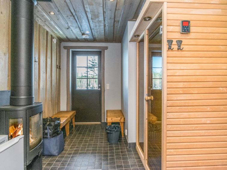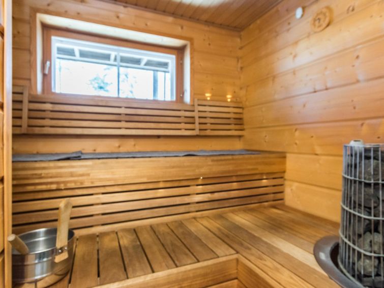 On the upper floor, there are two bedrooms, both of which have their own bathroom with WC and shower, plus a TV and DVD player. On the ground floor, there is one bedroom with a private bathroom with WC and shower, TV and DVD player. In the sauna section, you can relax in an infrared sauna, an electric sauna or a fireplace room.