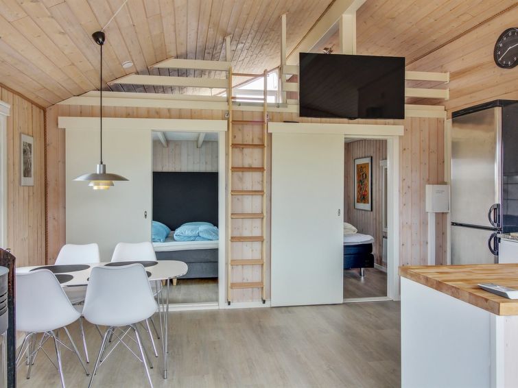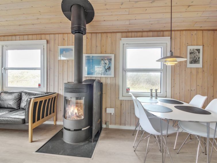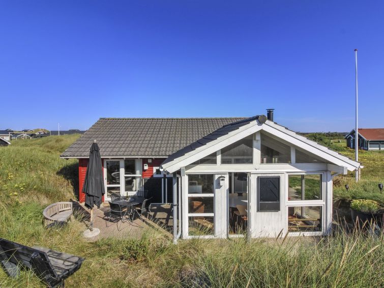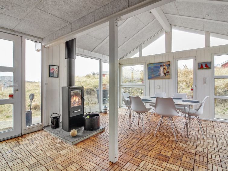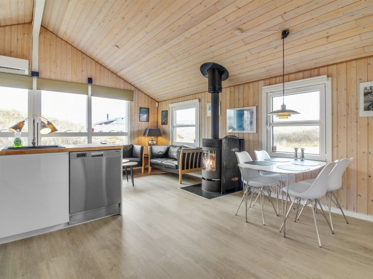 "Har" - 400m from the sea in NW Jutland", 2 rom hus 65 m2. Passer for 6 voksne. Stue med, TV og radio. Åpen galleri, 1 rom med, 1 dobbeltseng og 2 sovemuligheter. 1 rom med, 1 dobbeltseng. Kjøkken (stekeovn, oppvaskmaskin, 4 keramiske kokeplater, mikrobølgeovn, frys). Dusj/WC. Drivhus. Fasiliteter: Internett (trådløs LAN [WLAN]). Max kjæledyr / hund tillatt 1 kjæledyr / hund tillatt.