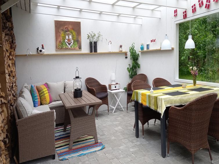 "Hartvig" - 800m from the sea in NE Jutland", 3 rom hus 90 m2. Passer for 6 voksne. Stue med, TV, radio, CD-spiller og stereoanlegg. 1 rom med, 1 dobbeltseng. 1 rom med, 1 dobbeltseng. 1 rom med, 2 sovesoffaer. Kjøkken (stekeovn, oppvaskmaskin, 4 keramiske kokeplater, mikrobølgeovn, frys). Dusj/WC. Terrasse 30 m2, dekt. Drivhus. Fasiliteter: Internett (trådløs LAN [WLAN]). Vennligst merk: røykfri bolig.