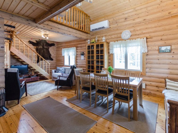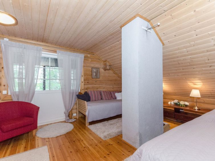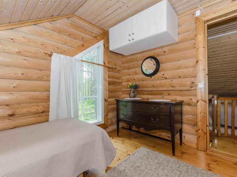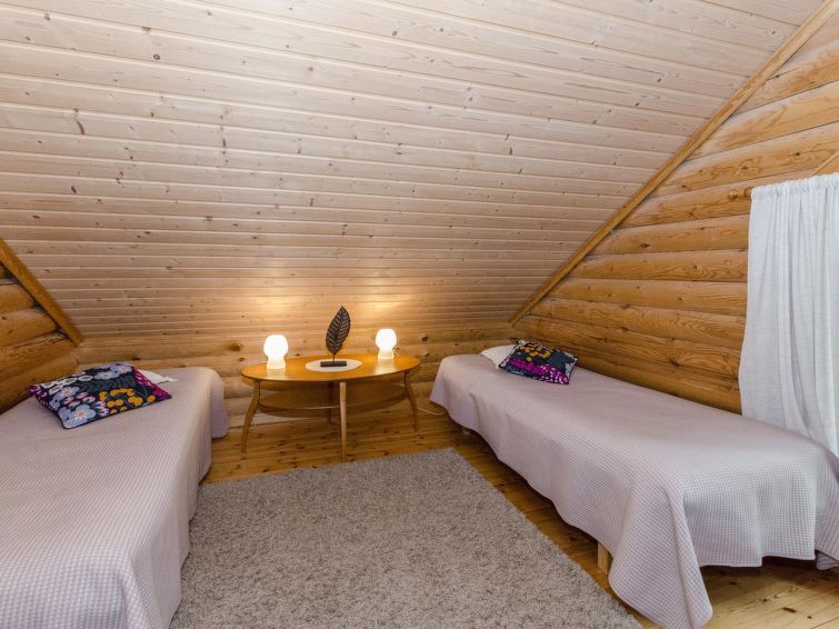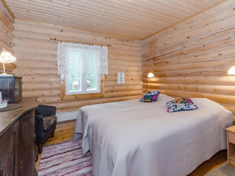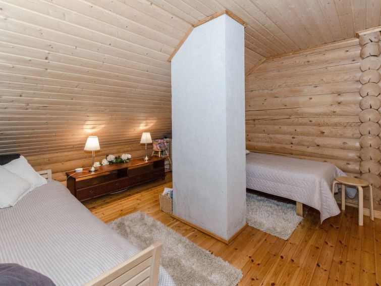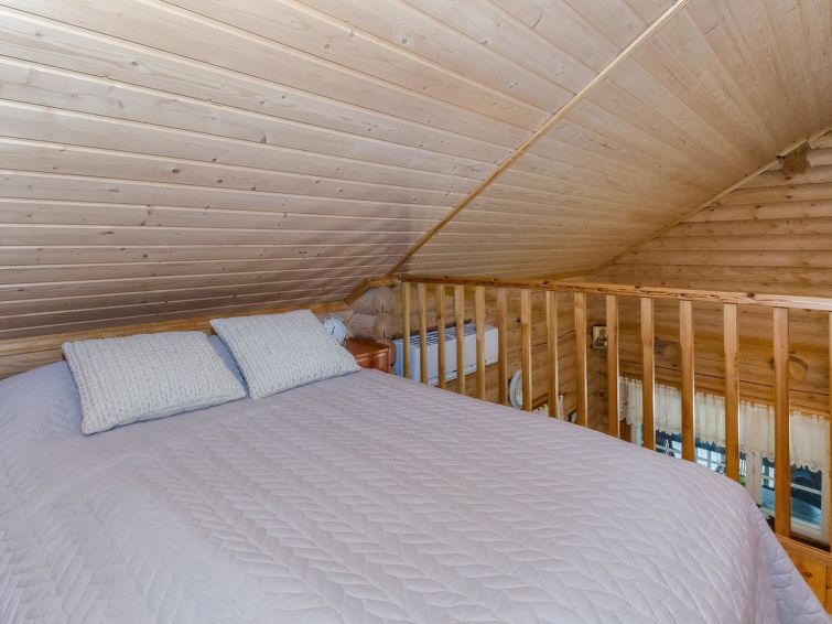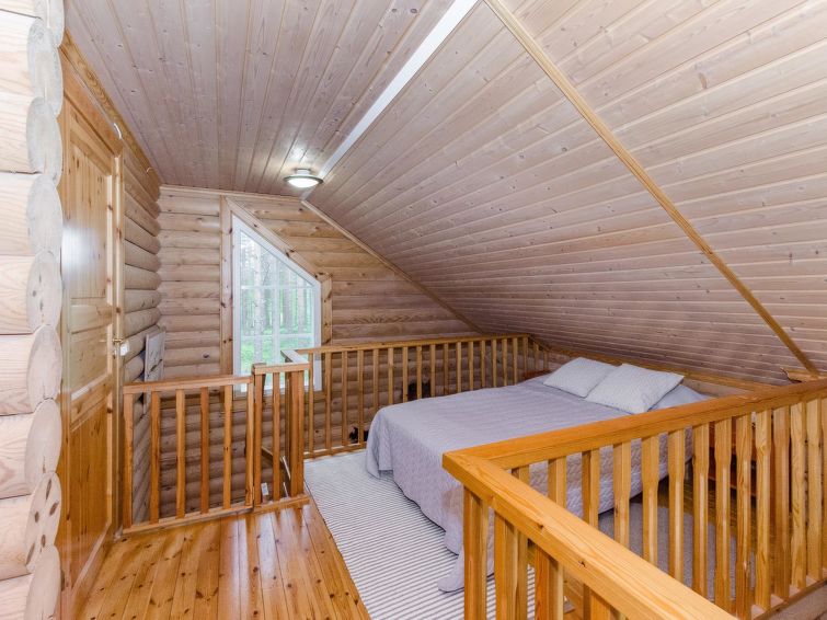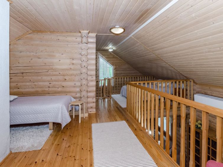 120 km northeast of Joensuu, L.Hattujärvi 40 m, own shore, deep bottom, own boat and jetty. Log cottage with two floors 2001, kitchen-livingroom, downstairs bedroom with double bed, upstairs bedroom with two beds and hallway with one bed, one bed (120 cm) and convertible sofa, glazed terrace and balcony. Own, separate sauna (wood heated stove). Available 2 fatbikes. High quality log cottage with two floors by the Lake Hattujärvi in Ilomantsi. The bottom is first shallow but becomes sheer deeper. Final cleaning cost will be added to the price.