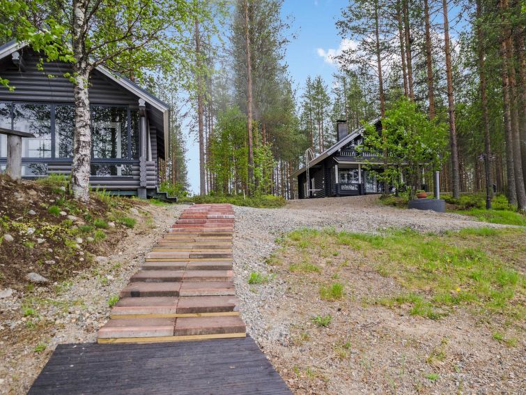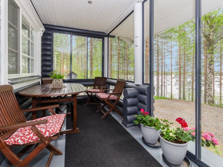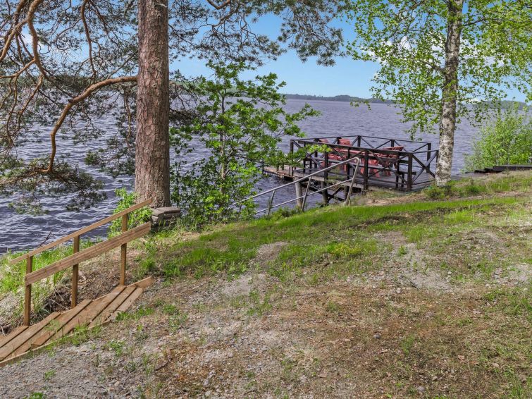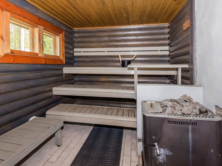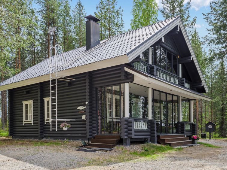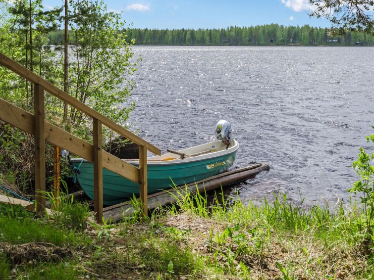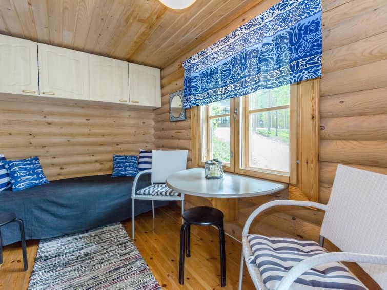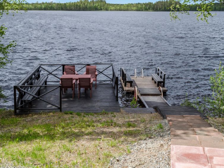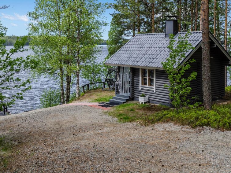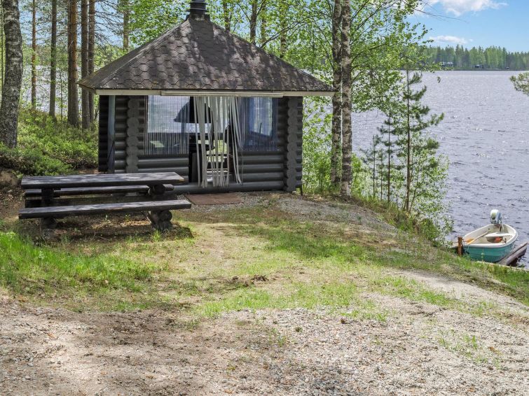 120 km northeast of Joensuu, L.Hattujärvi 40 m, own shore, deep bottom, own boat and jetty. Log cottage with two floors 2001, kitchen-livingroom, downstairs bedroom with double bed, upstairs bedroom with two beds and hallway with one bed, one bed (120 cm) and convertible sofa, glazed terrace and balcony. Own, separate sauna (wood heated stove). Available 2 fatbikes. High quality log cottage with two floors by the Lake Hattujärvi in Ilomantsi. The bottom is first shallow but becomes sheer deeper. Final cleaning cost will be added to the price.