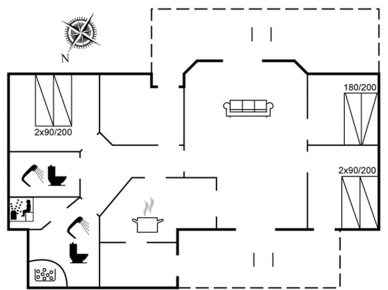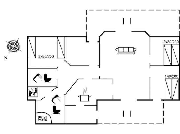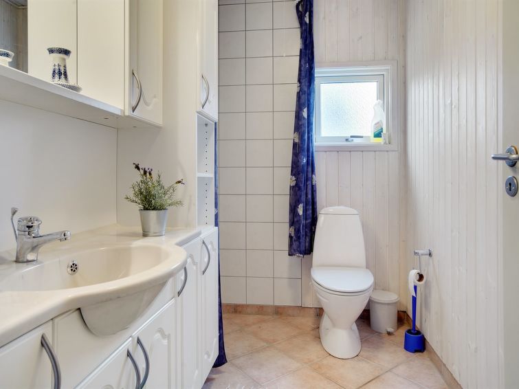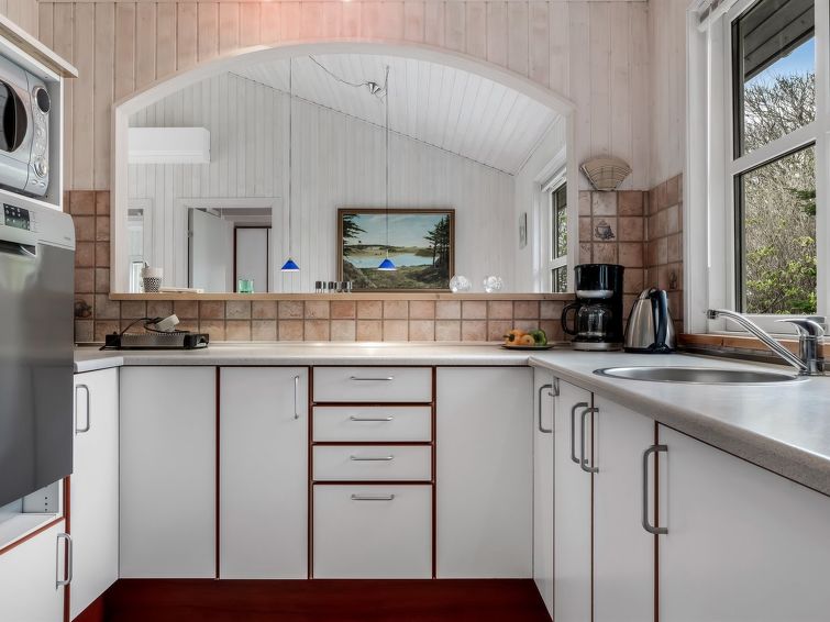 "Hauke" - 250m from the sea in NW Jutland", 3 rom hus 120 m2. Passer for 6 voksne. Stue med, TV og radio. 1 rom med, 1 dobbeltseng. 1 rom med 2 senger. 1 rom med 2 senger. Kjøkken (stekeovn, oppvaskmaskin, 4 keramiske kokeplater, frys). 2 dusjer/WC, boblebad. Fasiliteter: høy barnestol. Internett (trådløs LAN [WLAN]). Vennligst merk: røykfri bolig.