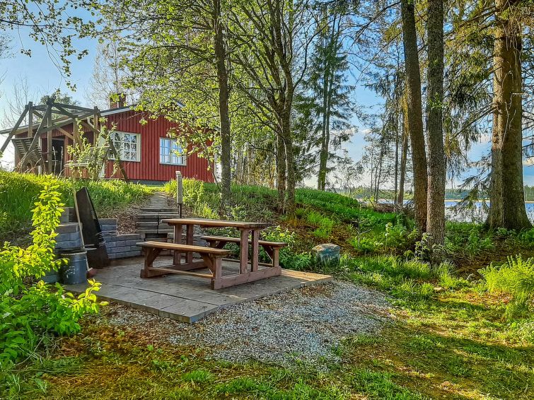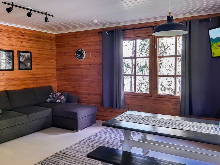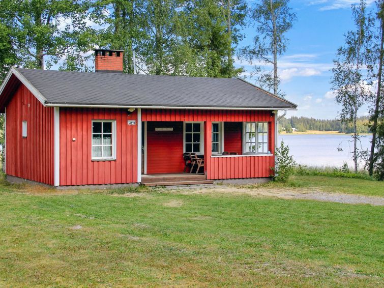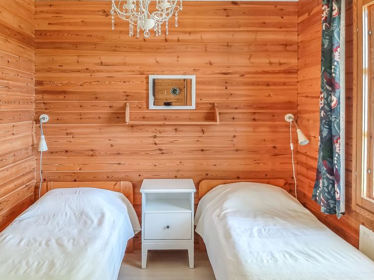Wooden cabin 1990, renovated 2021, living room/kitchen with convertible sofa, bedroom with 2 beds, sauna, dressing room, open veranda.
