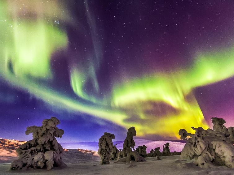 255 km north of Rovaniemi, in Saariselkä Holiday center in Laanila area.
