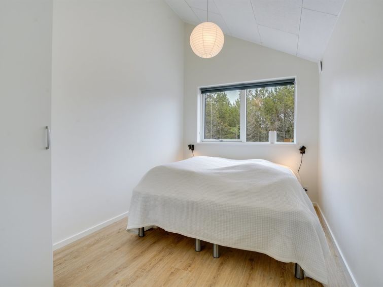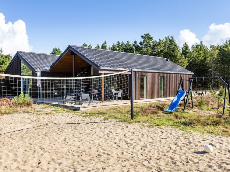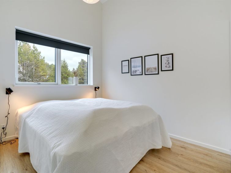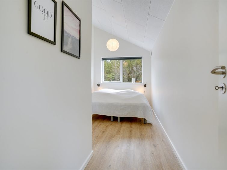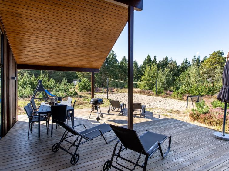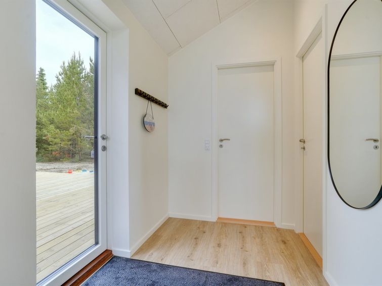 Enmannsbolig, bygget i 2020. 1 km fra sjøen. Privat: uberørt tomt 2'503 m2. Terrasse (113 m2), lekeplass (huske). I huset: badstu, vaskemaskin, tørketrommel. Parkering ved hbrukt. El-ladestasjon. Daglivarehandel 1 km. Golfbane 500 m. Eieren godtar ikke noen ungdomsgrupper.