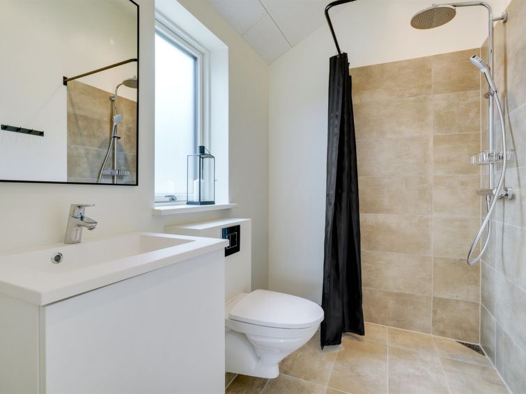 "Heidi" - 1km from the sea in Western Jutland", 4 rom hus 150 m2. Passer for 8 voksne + 2 barn. Stue med, TV og stereoanlegg. 1 rom med, 1 dobbeltseng. 1 rom med, 1 dobbeltseng. 1 rom med, 1 dobbeltseng. 1 rom med, 1 dobbeltseng. Kjøkken (stekeovn, oppvaskmaskin, 4 keramiske kokeplater, mikrobølgeovn, frys). 2 dusjer/WC, boblebad. Terrasse 26 m2, dekt. Fasiliteter: høy barnestol. Internett (trådløs LAN [WLAN]). Vennligst merk: røykfri bolig.