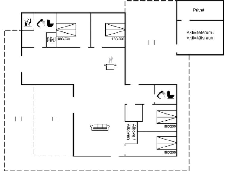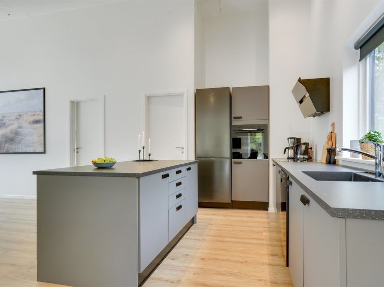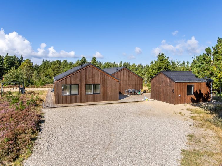 "Heidi" - 1km from the sea in Western Jutland", 4 rom hus 150 m2. Passer for 8 voksne + 2 barn. Stue med, TV og stereoanlegg. 1 rom med, 1 dobbeltseng. 1 rom med, 1 dobbeltseng. 1 rom med, 1 dobbeltseng. 1 rom med, 1 dobbeltseng. Kjøkken (stekeovn, oppvaskmaskin, 4 keramiske kokeplater, mikrobølgeovn, frys). 2 dusjer/WC, boblebad. Terrasse 26 m2, dekt. Fasiliteter: høy barnestol. Internett (trådløs LAN [WLAN]). Vennligst merk: røykfri bolig.