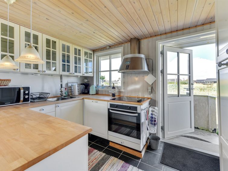 "Heilo" - from the sea in Western Jutland", 2 rom hus 77 m2. Passer for 4 voksne. Stue med, TV og radio. 1 rom med, 1 dobbeltseng. 1 rom med, 1 dobbeltseng. Kjøkken (stekeovn, oppvaskmaskin, 3 keramiske kokeplater, mikrobølgeovn, frys). Dusj/WC, boblebad. Vennligst merk: røykfri bolig.