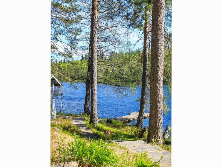 Savonlinna 50 km to the east, Multalampi Pond 20 m (length 0.6 km, width 0.15 km) deep, soft mud bottom, sandy beach around the pier, boat.