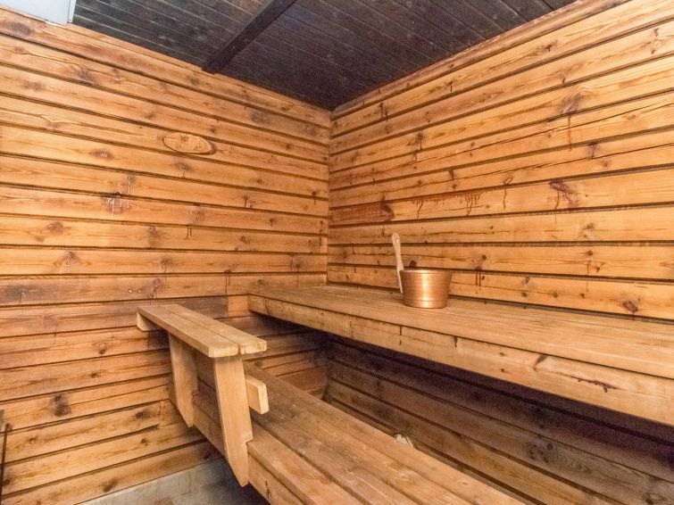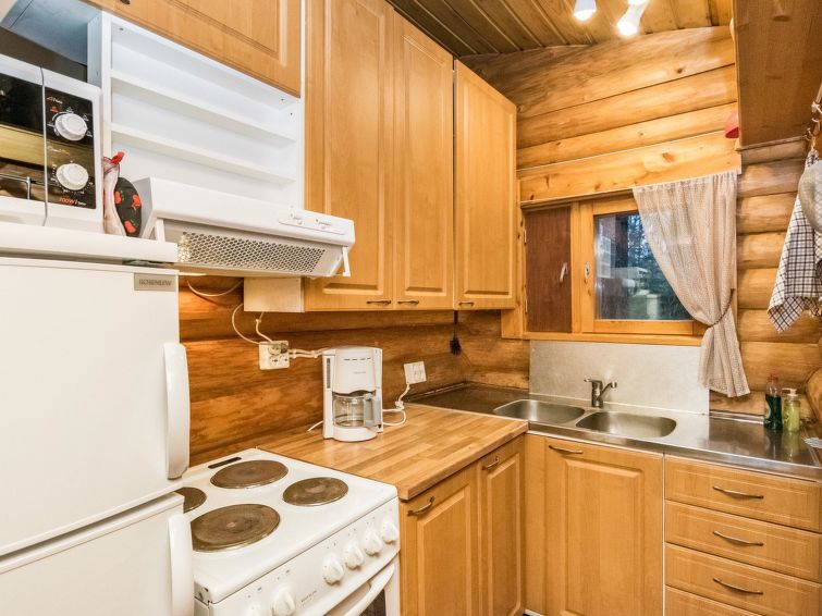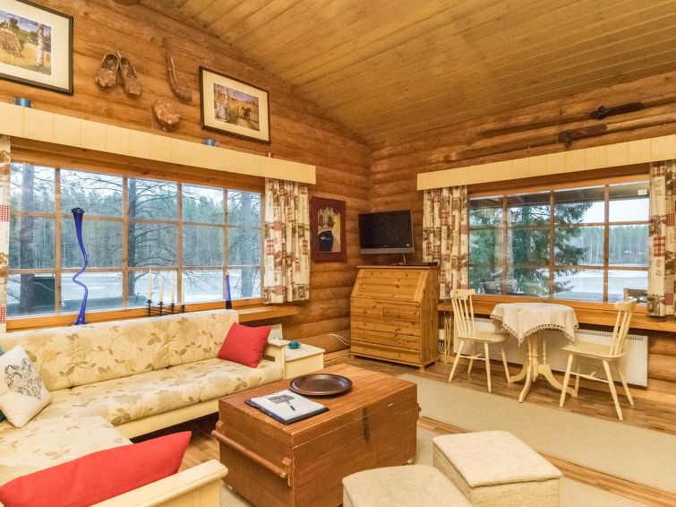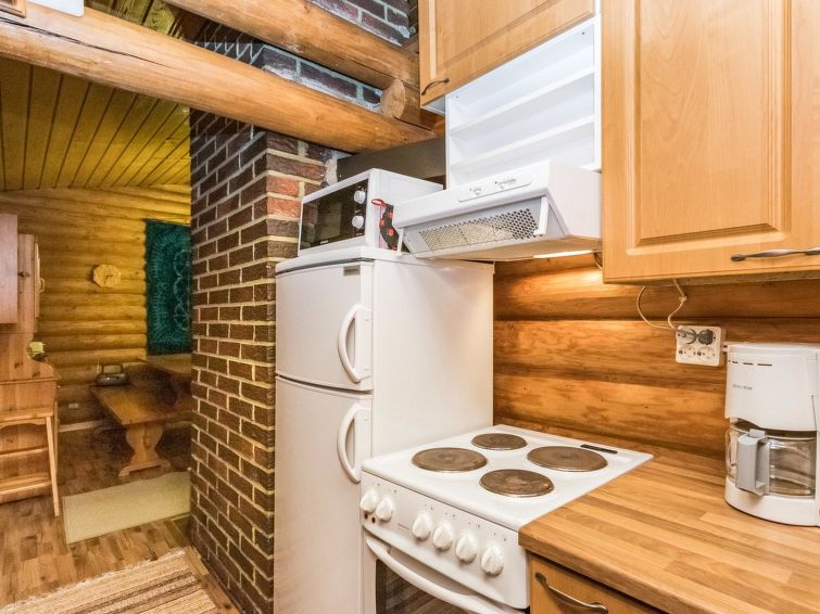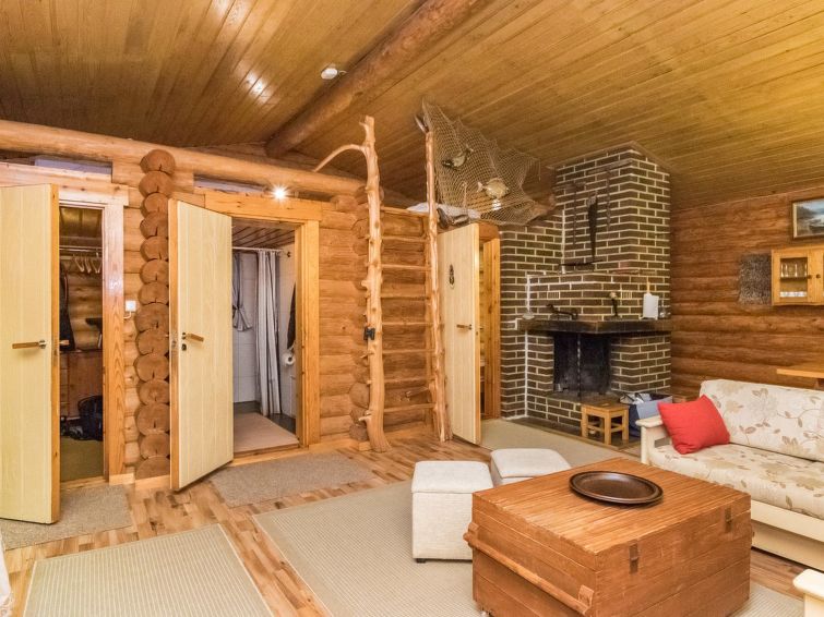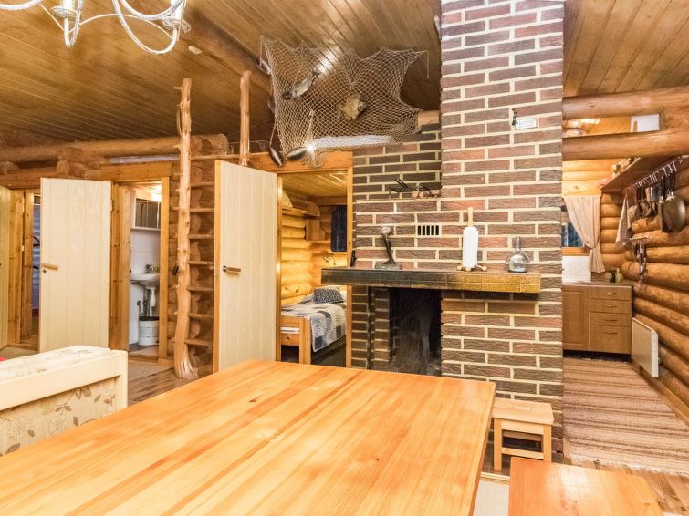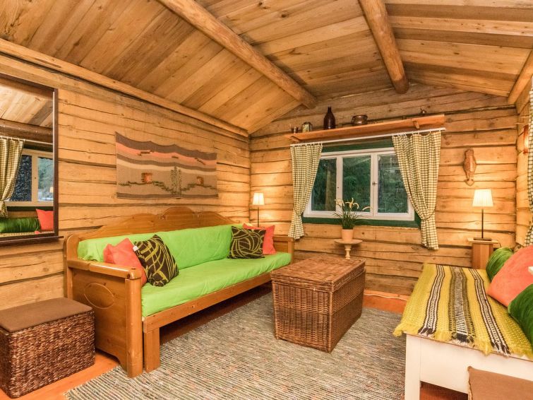 A log cabin in 1972, renovated in 2012, kitchen-living room, sleeping alcove (5.5 sq ft) with two beds, sleeping loft with mattresses for three (height max. 1 m, floor area 18 sqm, steep ladder to the loft), bathroom with shower and toilet, hallway, terrace. Tap water is suitable for household use, owner brings the drinking water in the canister.