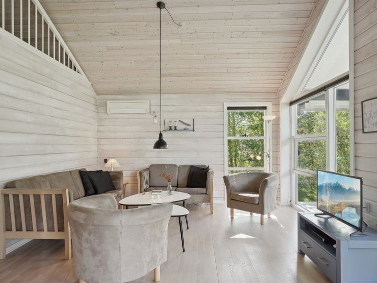 Enmannsbolig, bygget i 2011. 350 m fra sjøen. Privat: uberørt tomt 1'001 m2. Terrasse (40 m2), grill, lekeplass (huske). I huset: vaskemaskin, tørketrommel. Parkering ved hbrukt. Daglivarehandel 3.5 km. Eieren godtar ikke noen ungdomsgrupper.
