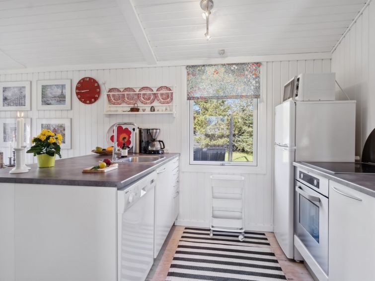 "Hellevi" - from the sea in NE Jutland", 3 rom hus 55 m2. Passer for 5 voksne. Stue med, TV, radio, CD-spiller, stereoanlegg og DVD. 1 rom med, 1 dobbeltseng. Studio 1 rom med med, 1 x 2 køysenger. 1 rom med, 1 dobbeltseng. Kjøkken (stekeovn, oppvaskmaskin, 4 keramiske kokeplater, mikrobølgeovn, frys). Dusj/WC. Terrasse 8 m2, dekt. Drivhus. Fasiliteter: høy barnestol barneseng (ekstra). Internett (trådløs LAN [WLAN]). Vennligst merk: røykfri bolig. Max kjæledyr / hund tillatt 1 kjæledyr / hund tillatt.