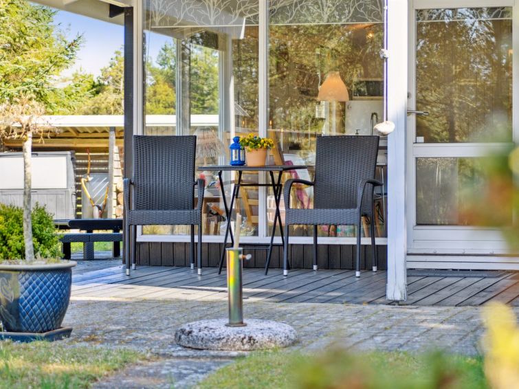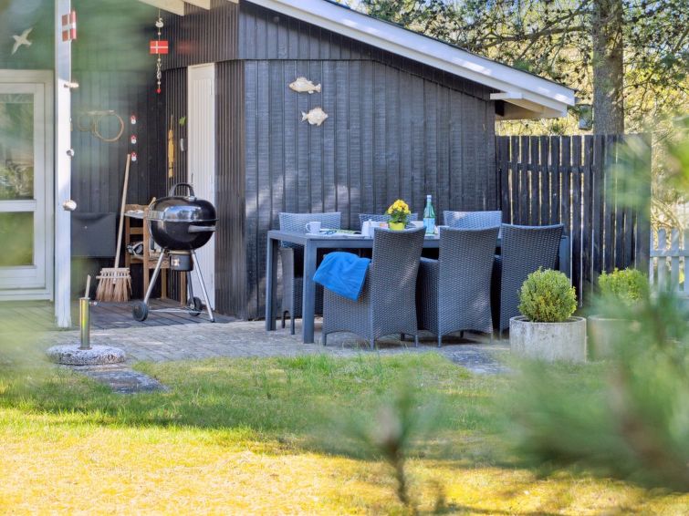 Enmannsbolig, bygget i 1970. 500 m fra sjøen. Fellesbruk: hage. Privat: tomt 1'200 m2, hage (inngjerdet). Terrasse (40 m2), grill, lekeplass (huske), parkering ved hbrukt. Daglivarehandel 900 m. Golfbane 6.1 km. Eieren godtar ikke noen ungdomsgrupper.