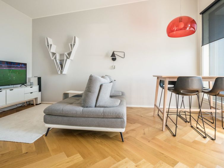 Elegantly furnished city apartment in a central location in Helsinki. The apartment’s roof terrace has a nice view over the city’s rooftops.