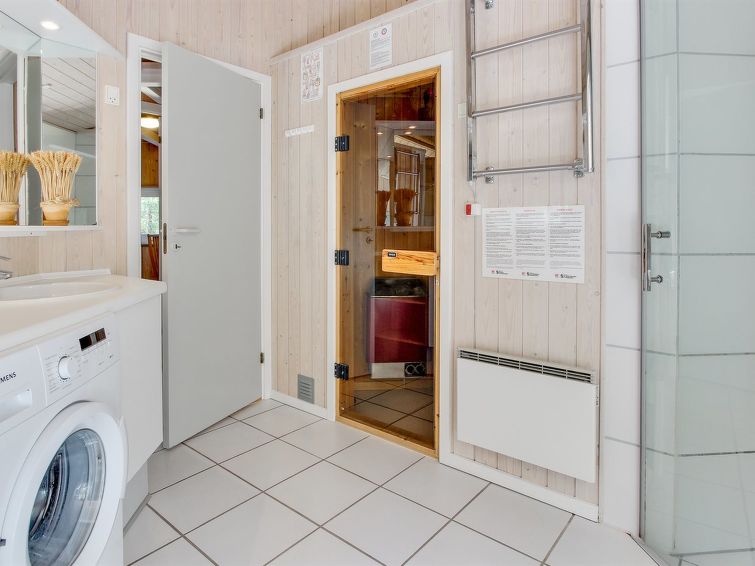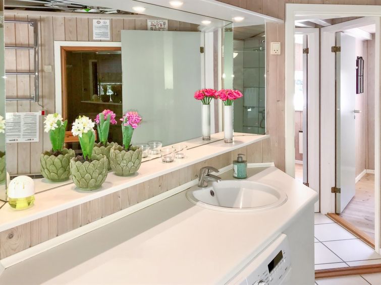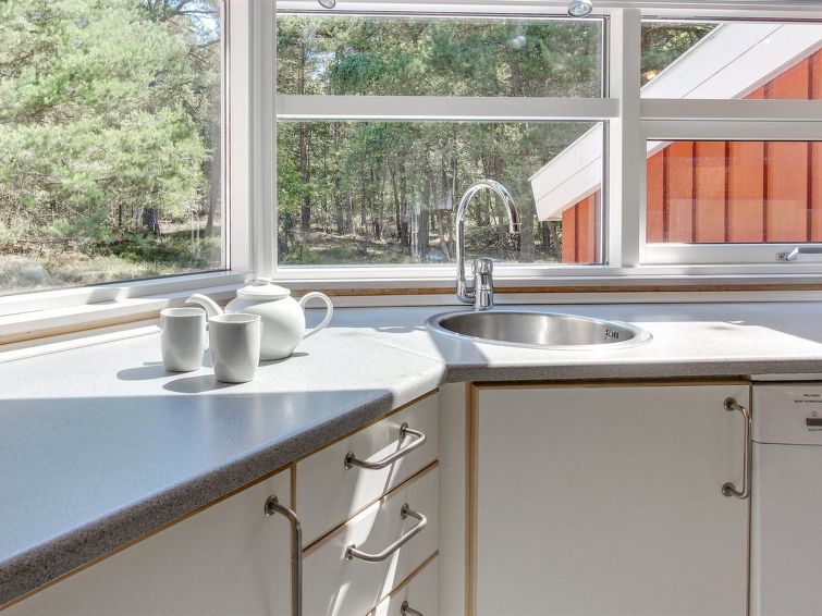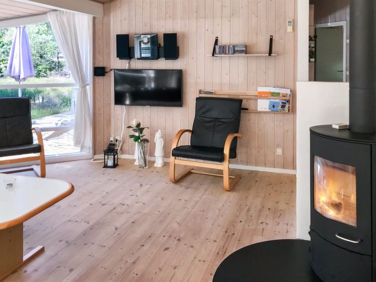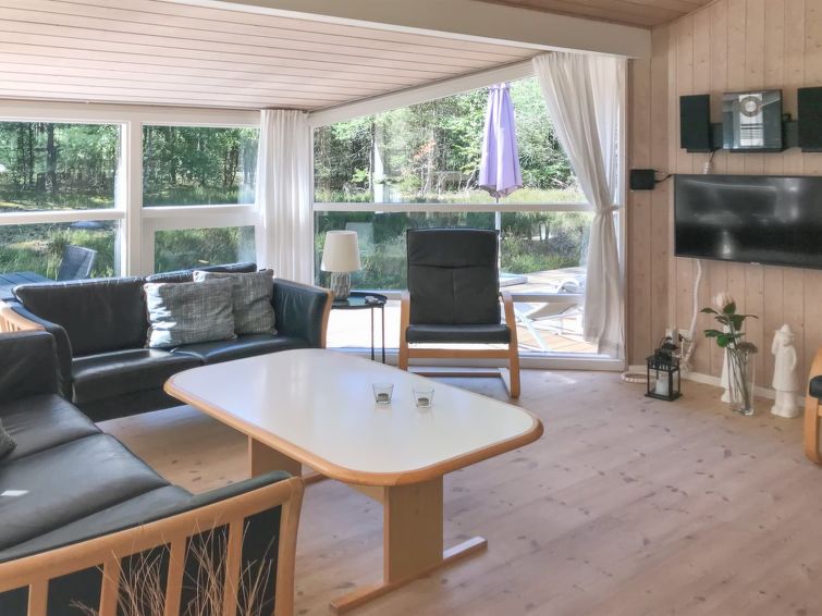 "Henriette" - 850m from the sea in Bornholm", 3 rom hus 80 m2. Passer for 6 voksne. Stue med, TV, radio, CD-spiller, stereoanlegg og DVD. 1 rom med, 1 dobbeltseng. 1 rom med, 1 dobbeltseng. Åpen galleri, 1 rom med, 1 x 2 køysenger. Kjøkken (stekeovn, oppvaskmaskin, 4 keramiske kokeplater, mikrobølgeovn, frys). Dusj/WC, boblebad. Terrasse 10 m2, dekt. Fasiliteter: høy barnestol barneseng (ekstra). Internett (trådløs LAN [WLAN]). Vennligst merk: røykfri bolig.