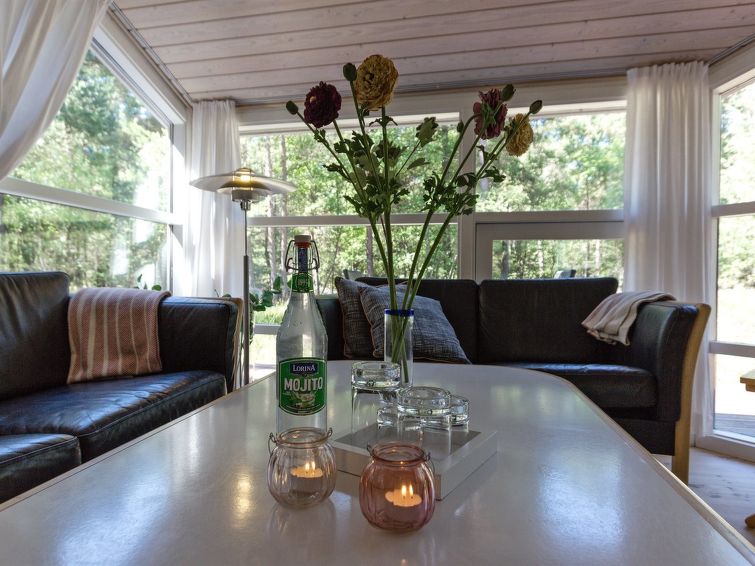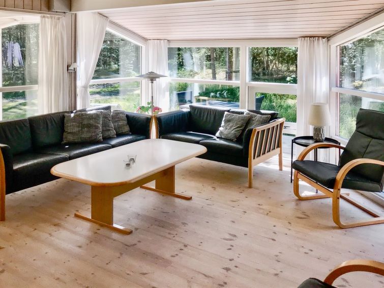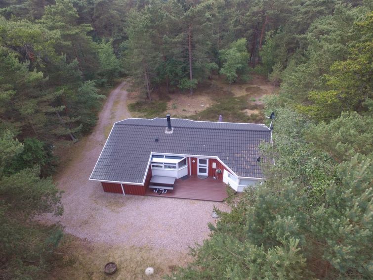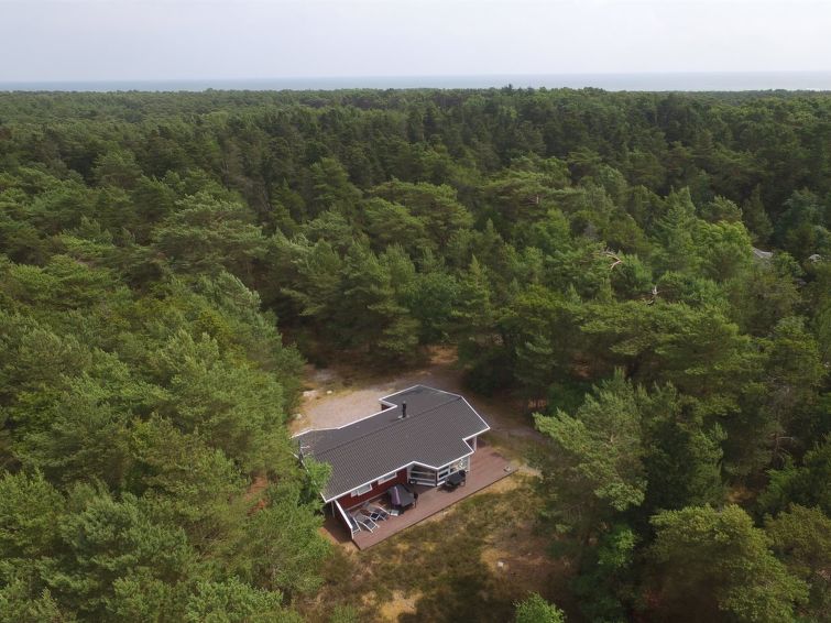 Enmannsbolig, bygget i 1994. 850 m fra sjøen. Privat: uberørt tomt 2'500 m2. Terrasse (30 m2). I huset: badstu, vaskemaskin. Parkering ved hbrukt. Bilporten. Daglivarehandel 3.5 km. Golfbane 3 km. Eieren godtar ikke noen ungdomsgrupper.