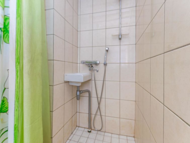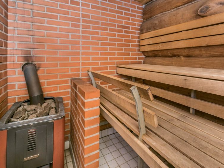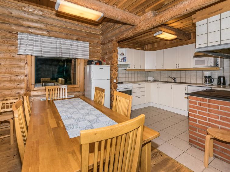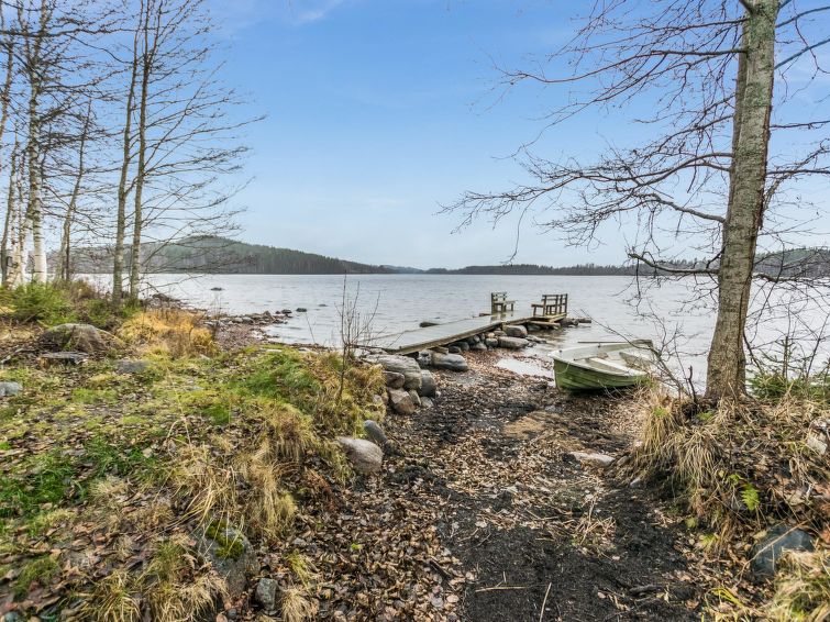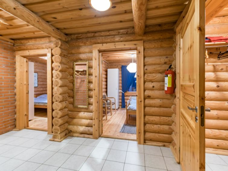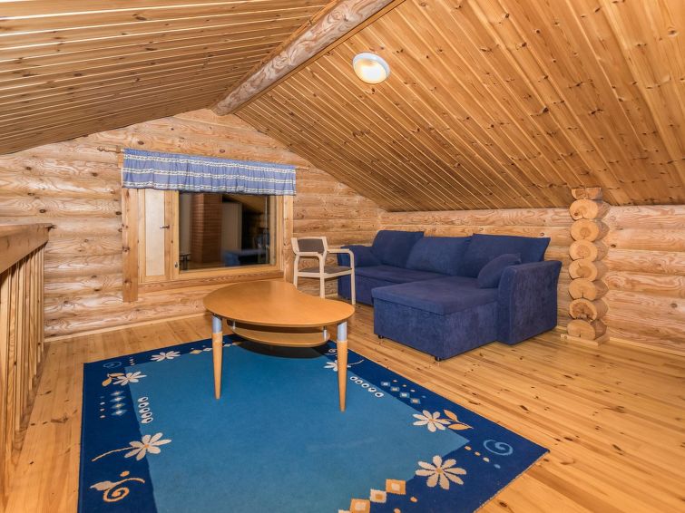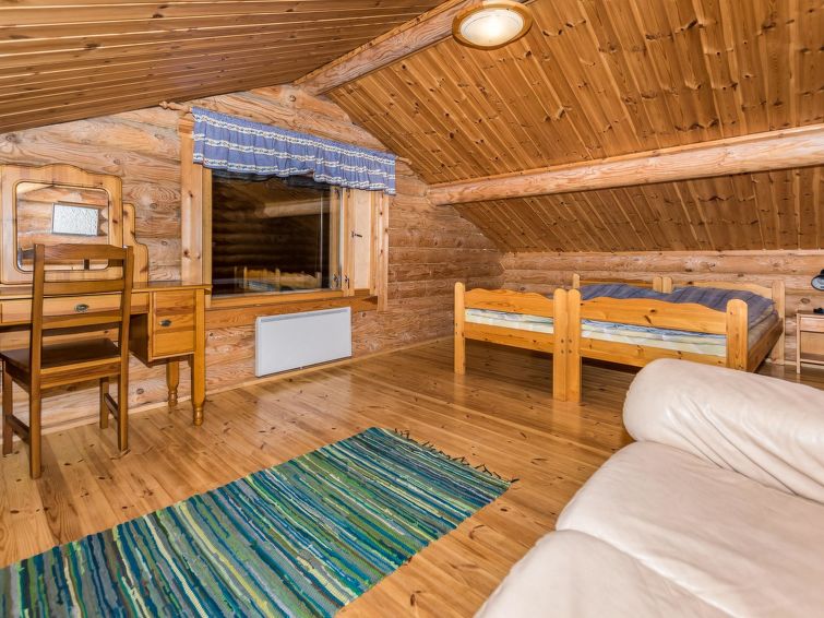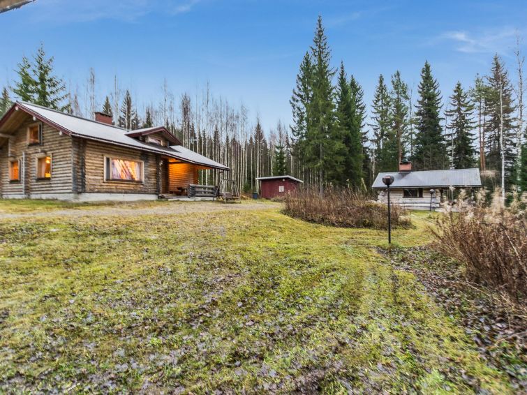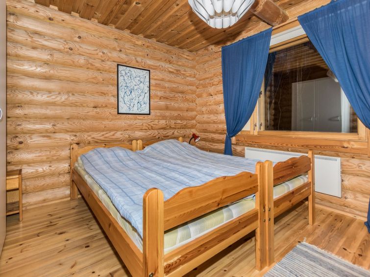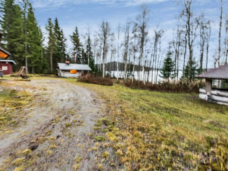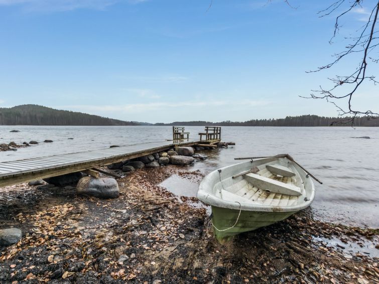 68 km east of Jyväskylä, L.Hankavesi 30 m (length 7 km, width 3 km), shallow, hard sand ans stone bottom, own boat. Log cottage 2006, living room/ kitchen, 2 bedrooms 2 beds in each, upstairs bedroom 2 beds and lounge 120 cm wide mattress, washroom (shower), hall, open porch. Shore sauna (30 m²), room with fireplace, washroom, H&C water, shower, wood-burning sauna stove. Gently sloping plot with birch trees, suitable for children. Shore faces south-west. Roofed grill has electricity and slate oven. Neighbours not visible.