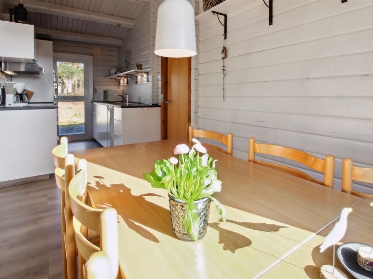 Enmannsbolig, bygget i 1973. 1 km fra sjøen. Privat: uberørt tomt 2'500 m2. Lekeplass (huske). I huset: badstu, vaskemaskin, tørketrommel. Parkering ved hbrukt. Daglivarehandel 2.5 km. Golfbane 150 m.