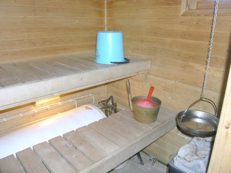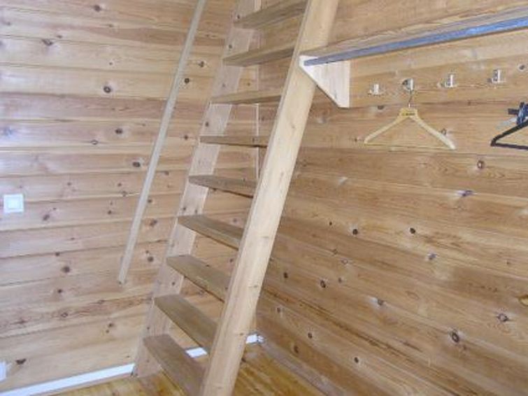 Wooden apartment in semi-detached house, built in 1990, living room with 2 beds, bedroom with 2 beds, mattresses on the loft (deep stairs to the loft, height of the loft is 1,45 at highest), kitchen corner, electric sauna, wash room/toilet, vestibule, storage. Apartment in semi-detached house in Holiday Village which is located in scenic and traditional Jokijärvi village. Hiking path. Campfire site by shore (in shared use). Also caravans in the area.
