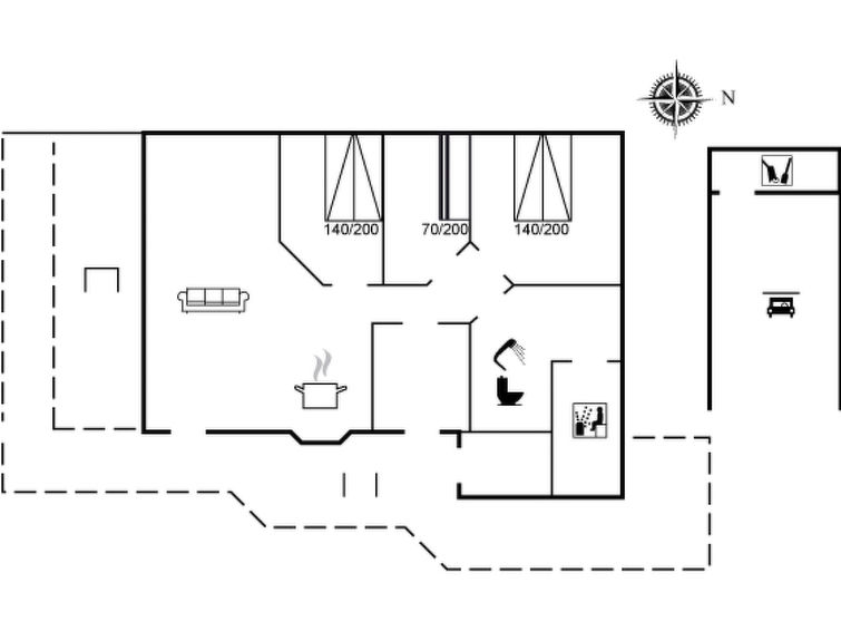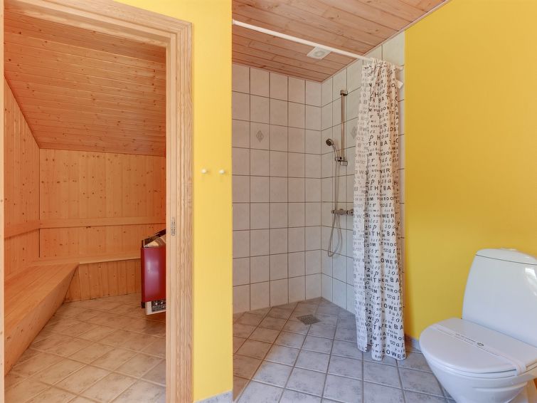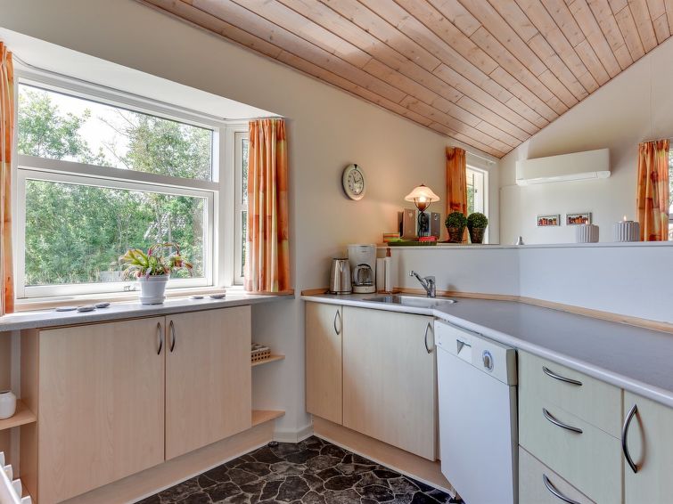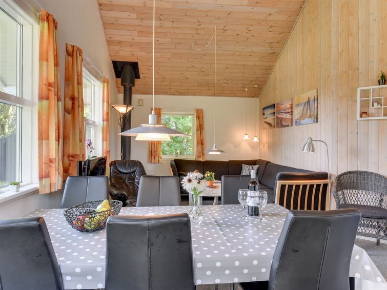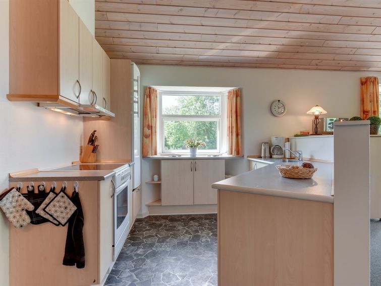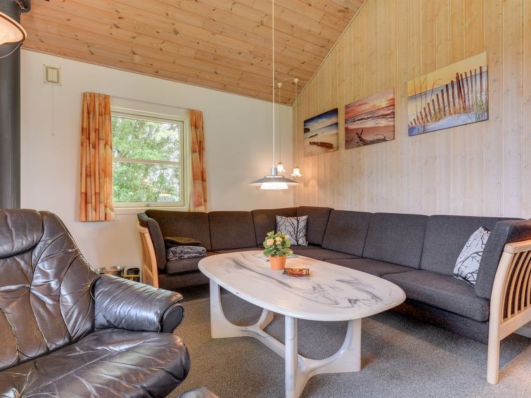 "Herlugh" - 1km to the inlet in Western Jutland", 3 rom hus 79 m2. Passer for 4 voksne + 3 barn. Stue med, TV, radio og CD-spiller. 1 rom med, 1 dobbeltseng. 1 rom med, 1 dobbeltseng. Åpen galleri, 1 rom med, 1 x 2 køysenger, 1 dobbeltseng. Kjøkken (stekeovn, oppvaskmaskin, 4 keramiske kokeplater, mikrobølgeovn, frys). Dusj/WC. Terrasse 14 m2, dekt. Fasiliteter: høy barnestol barneseng (ekstra). Internett (trådløs LAN [WLAN]). Vennligst merk: røykfri bolig.