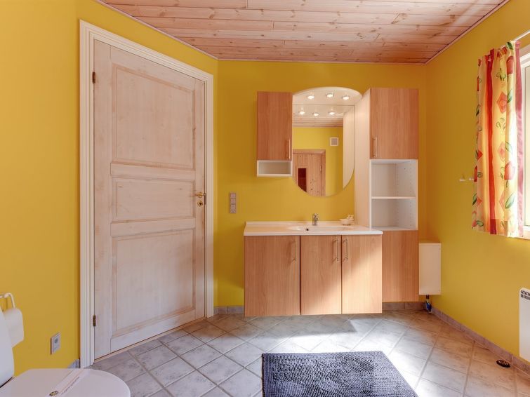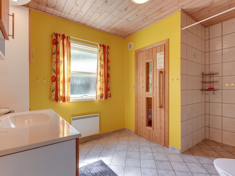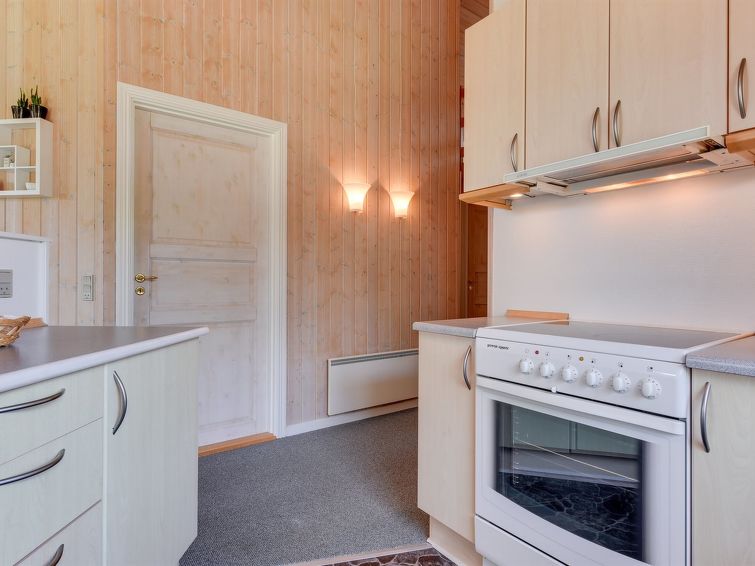 Enmannsbolig, bygget i 1999. 7 km fra sjøen. Privat: tomt 968 m2, velholdt hage. Terrasse (24 m2), lekeplass (huske). I huset: badstu, vaskemaskin, tørketrommel. Parkering ved hbrukt. Bilporten. Daglivarehandel 1 km. Eieren godtar ikke noen ungdomsgrupper.