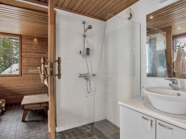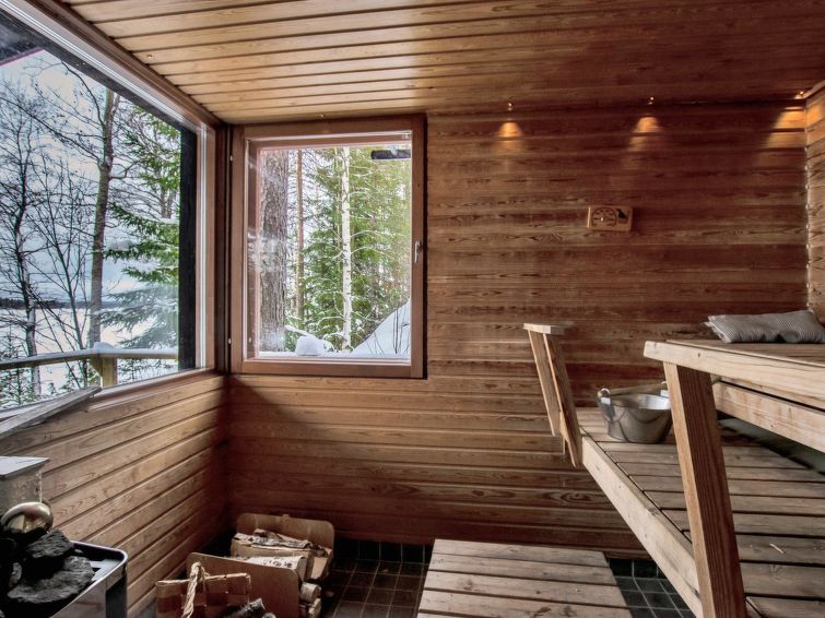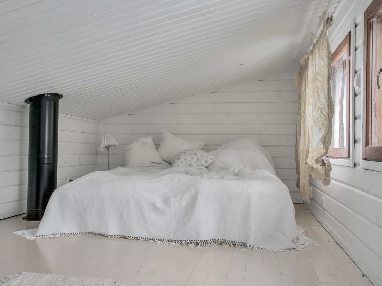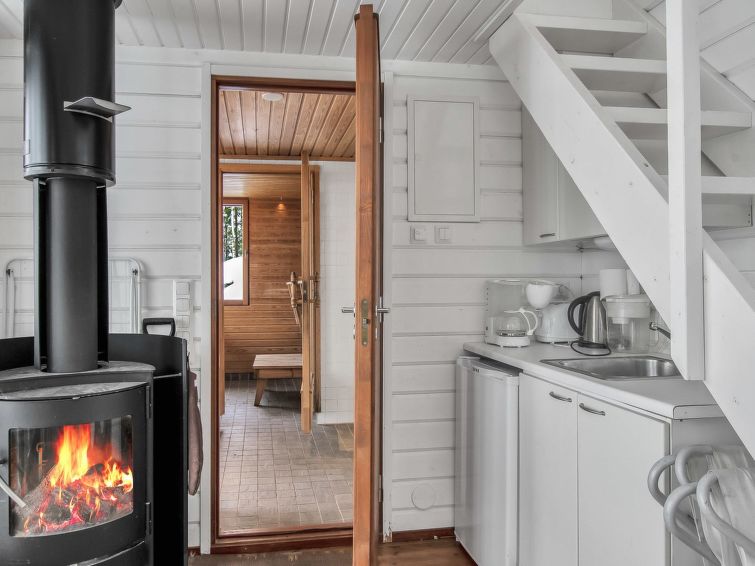 Lakeside sauna with washroom and sauna room (wood-burning sauna stove), light fireplace and 1 bed in the lounge, 2 frame mattresses without legs in the loft of the sauna. There is a hot tub available for rent in connection with the sauna, However, the hot tub is not available in the frost season. The tenant heats and cleans the tub himself.