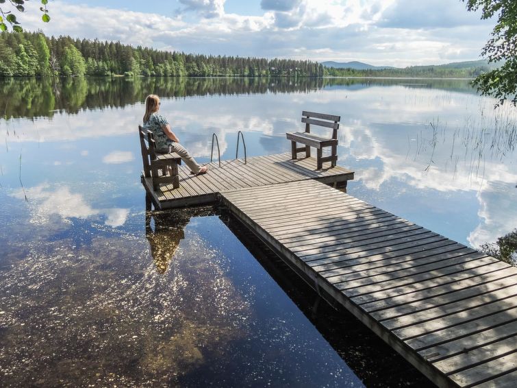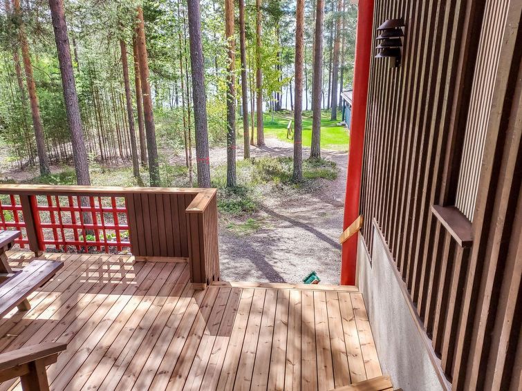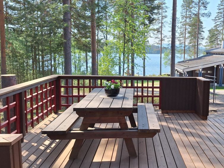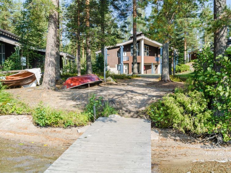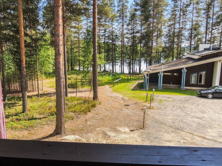 77 km north of Joensuu, Pond Käränkälampi 20 m (length 2 km, width 1,5 km), common beach with shallow hard sand bottom, jetty. Wooden/concrete flat 1990, kitchen-living room, bedroom with double bed, bedroom with 1 bed (there is still old picture with 2 beds), bedrooms with double bed (140 cm), sleeping gallery with two beds, dressing room, washroom, sauna (elec. stove), veranda and balcony. Spacious holiday apartment situated by the Pond Käränkälampi in Loma-Koli cottage area, suitable for a bigger family. Open surroundings with some pine trees. A relatively peaceful location. Beach suitable for children. Boat available on 1.6.-15.9. There are 2 life vests for adults (70-100 kg) and 2 for children (30-40 kg). The flat has a wireless Internet 4G and smart tv. Air heat pump for heating and cooling.