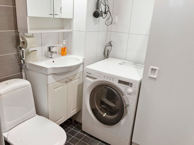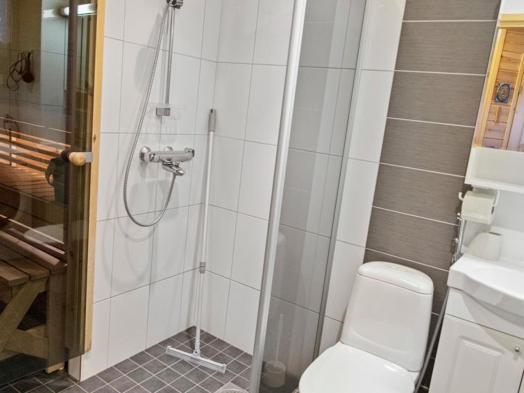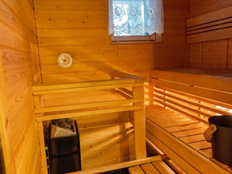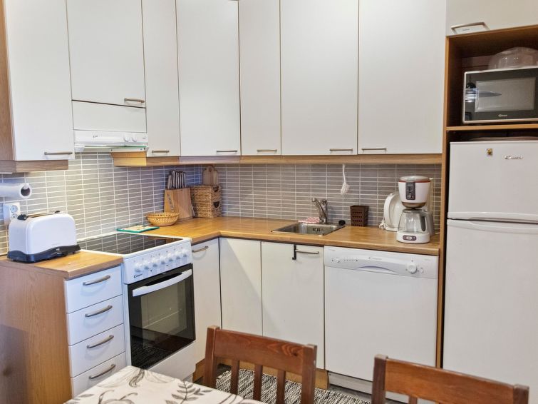 40km north of Kolari, Äkäslompolojärvi 200m, beach 2km, holiday apartment finished in february 2011(1st floor of building), 1 bedroom with double bed, kitchen, with retractable sofa bed, sauna(electric heated), bathroom/w. Ski tuning room is in the left end of the building downstairs. Cozy holiday apartment in the heart of Äkäslompolo services, easy to reach without a car. No pets allowed in the apartment. Final cleaning included in price, bed linen can be leased.