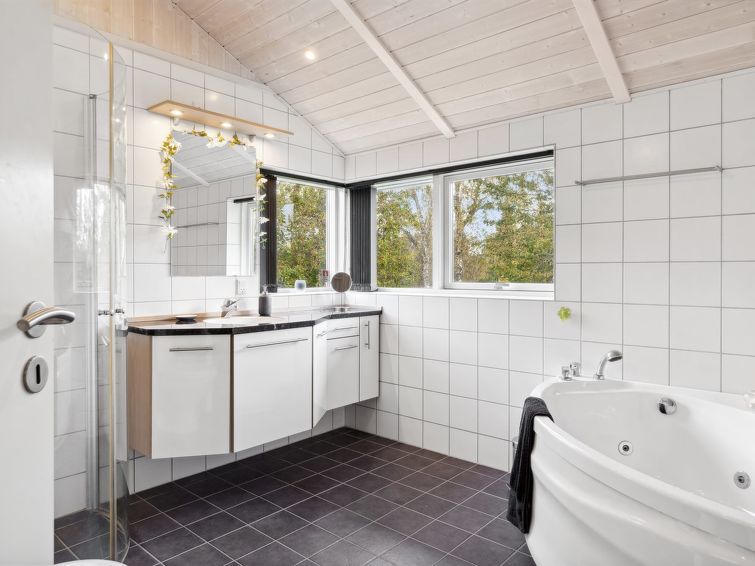 "Hilaria" - 1.4km from the sea in Sealand", 3 rom hus 101 m2. Passer for 6 voksne + 1 barn. Stue med, TV. 1 rom med, 1 dobbeltseng. 1 rom med, 1 dobbeltseng. 1 rom med, 1 x 2 køysenger. Kjøkken (stekeovn, oppvaskmaskin, 4 keramiske kokeplater, mikrobølgeovn, frys). Dusj/WC, boblebad. Terrasse 22 m2, dekt. Fasiliteter: barneseng (ekstra). Internett (trådløs LAN [WLAN]). Vennligst merk: røykfri bolig.