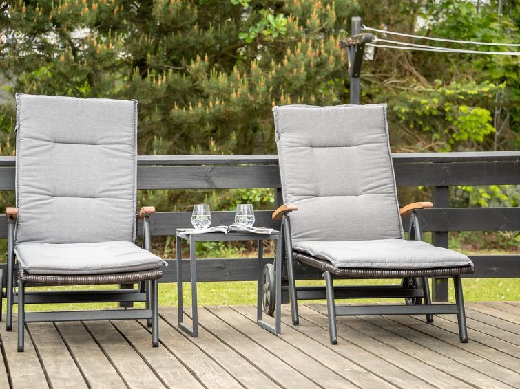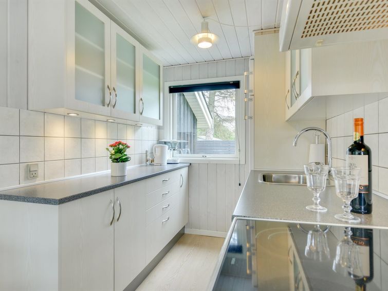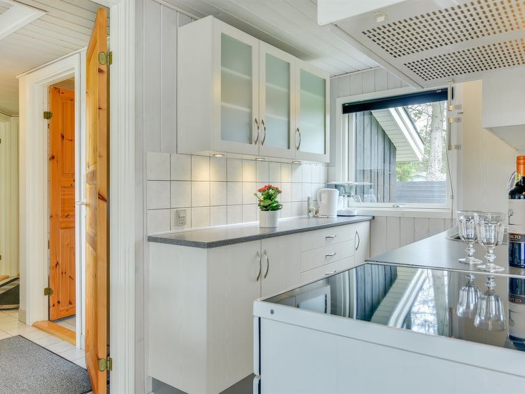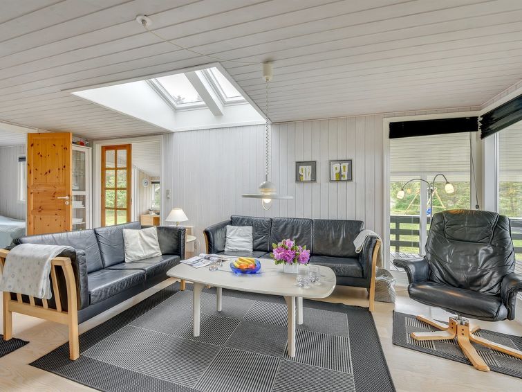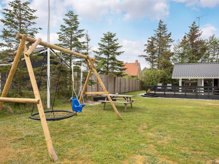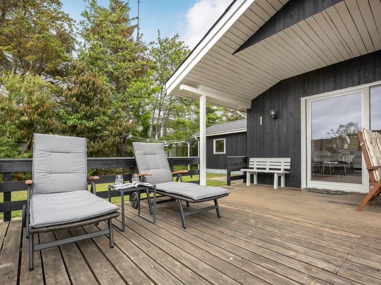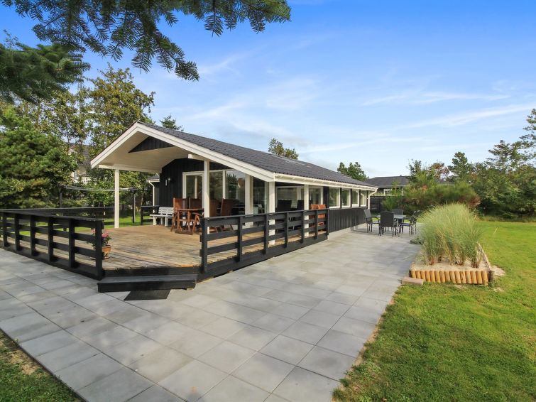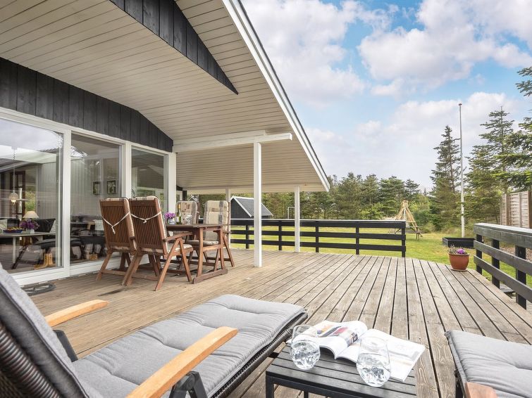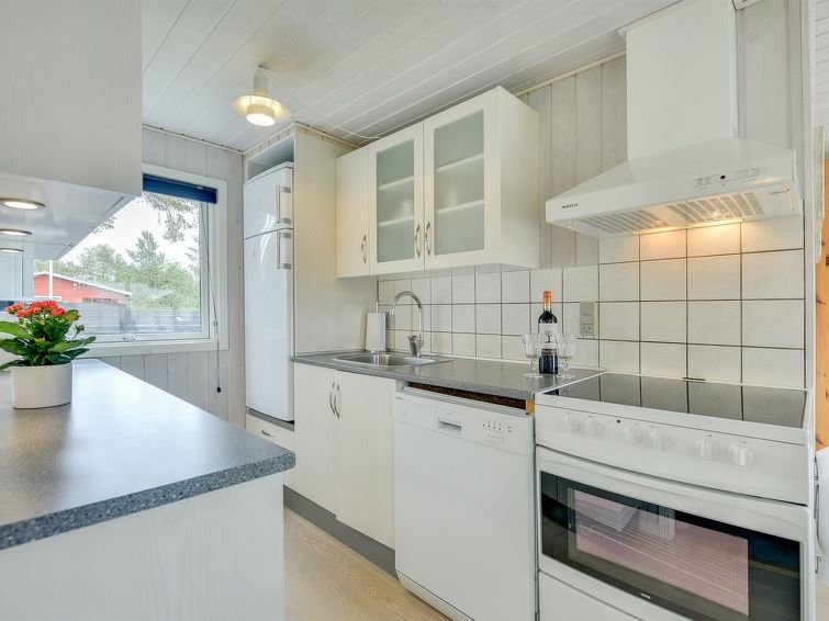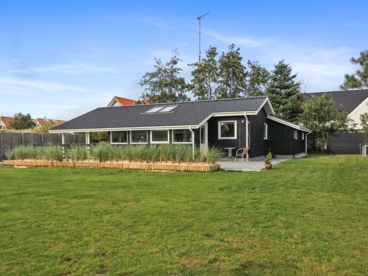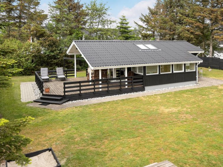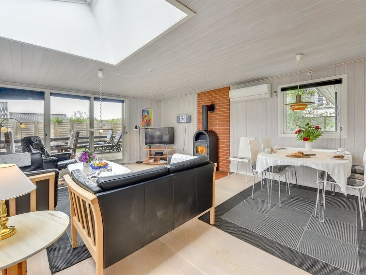 "Hildegarde" - 900m from the sea in Western Jutland", 3 rom hus 97 m2. Passer for 6 voksne + 1 barn. Stue med, TV, CD-spiller, stereoanlegg og DVD. 1 rom med, 1 dobbeltseng. 1 rom med, 1 dobbeltseng. 1 rom med 2 senger. Kjøkken (4 kokeplater, stekeovn, oppvaskmaskin, mikrobølgeovn, frys). Dusj/WC, boblebad. Terrasse 15 m2, dekt. Fasiliteter: høy barnestol barneseng (ekstra). Internett (trådløs LAN [WLAN]). Vennligst merk: røykfri bolig.