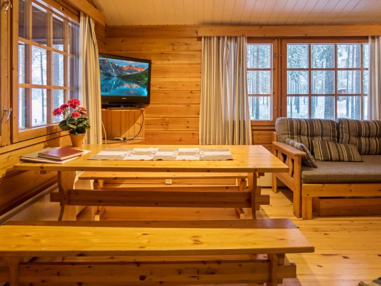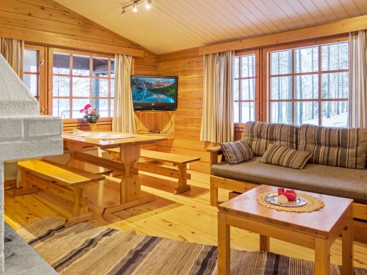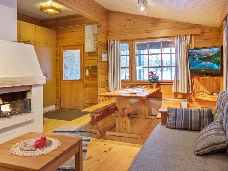 This log cottage by the Lake Pikku-Valkeinen in Välikoski area in Sotkamo was completed in 1982. Floor area 57 m². Kitchen, living room with beds for three, bedroom with separate beds for two. Sauna (electric heating), washroom, separate toilet.