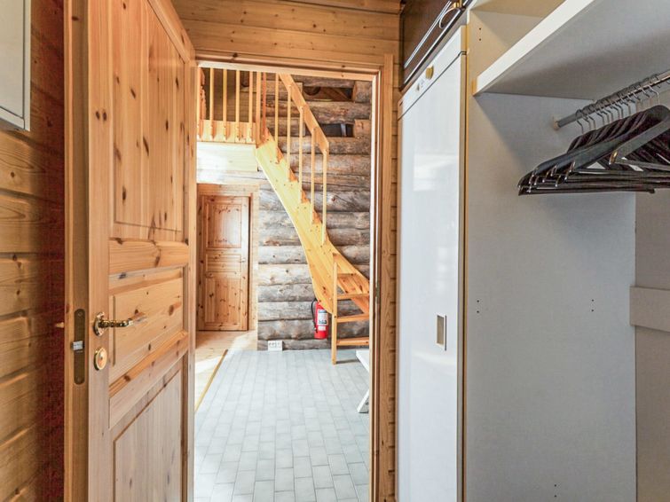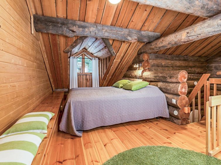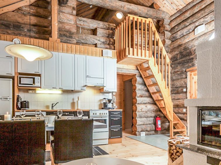 40 km north of Kolari in Äkäslompolo, Lake Äkäslompolo 1 km, Log duplex apartment, combined living room kitchen, two bedrooms, 2 separate beds in each bedroom, separate toilet, washing room, sauna. Spacious loft (sloping roof, low), 2 beds.